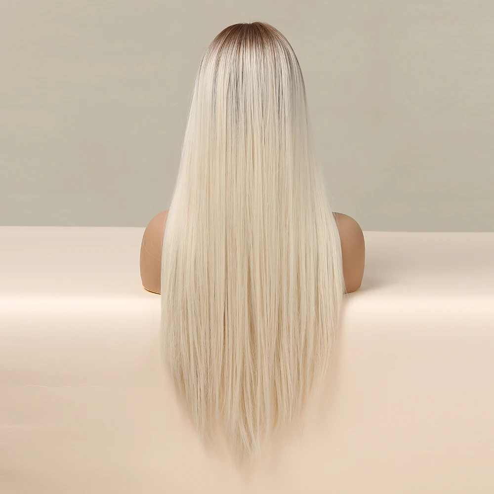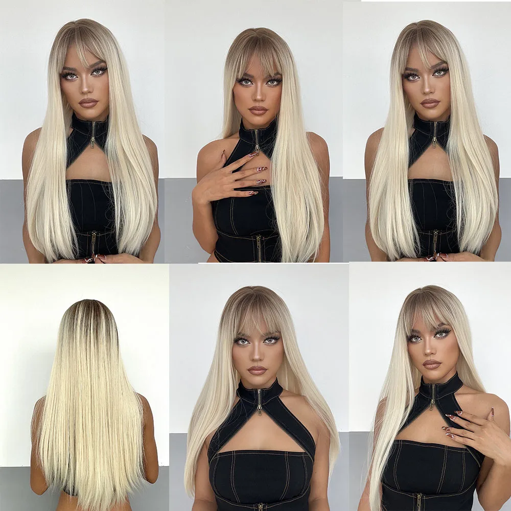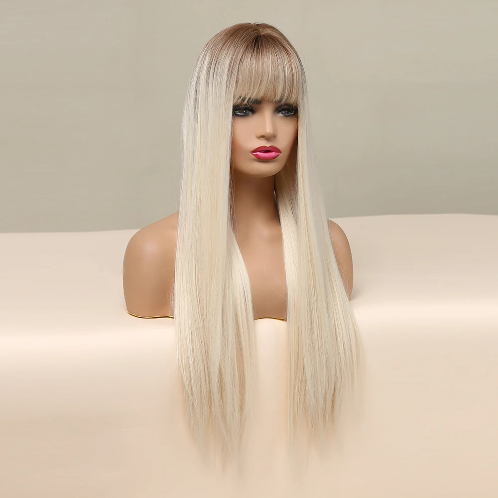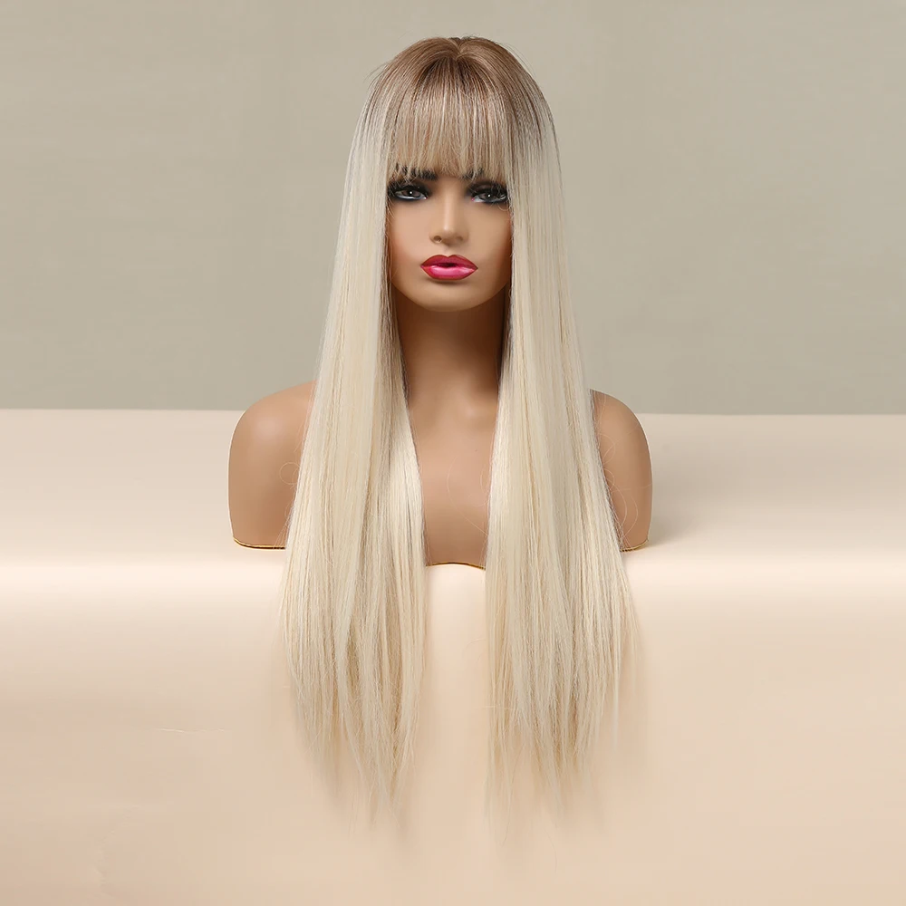 Длинные прямые синтетические парики henmargu, парики из коричневого на платину с эффектом омбре и челкой, натуральные парики для косплея для женщин, термостойкие парики
