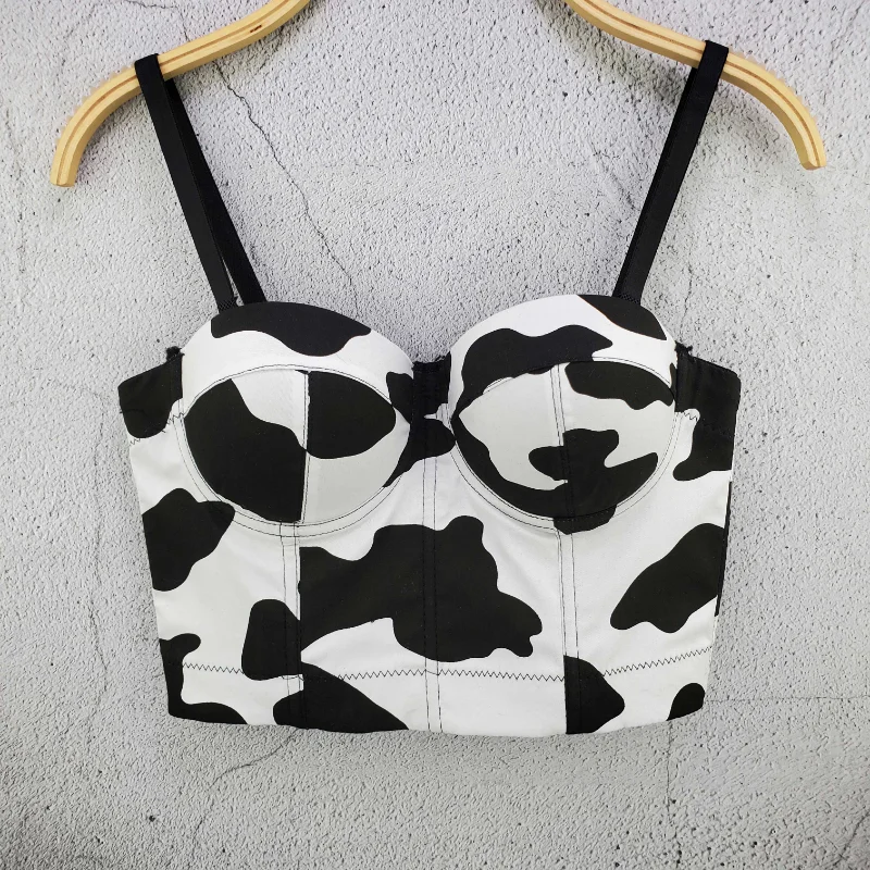 2021 летняя Новинка, модная маленькая хлопковая кофта с принтом коровы, короткий укороченный топ на бретельках, майка с открытой спиной, майка, кофта