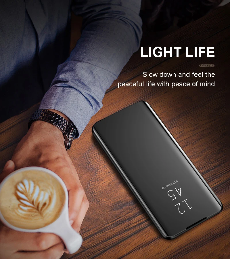 Особенности:1. Уникальный и умный дизайн сна/пробуждения, позволяет автоматически включать/выключать дисплей при открытии/закрытии Откидной Панели, эффективно продлевает срок службы батареи, добавляет больше удобства.2. Умный зеркальный кожаный чехол-книжка, быстро просматривает SMS, звонки, дату, время и т. д.3. Зеркальная поверхность с покрытием, можно использовать как зеркало.4. Идеально сочетается с формой вашего телефона и делает его индивидуальным и Поглощающим.5. Он может защитить заднюю часть и рамку вашего телефона от отпечатков пальцев, царапин, пыли, ударов и истирания.6. Уникальный дизайн обеспечивает легкий доступ ко всем кнопкам, элементам управления и портам без необходимости снимать чехол.
