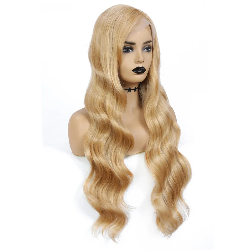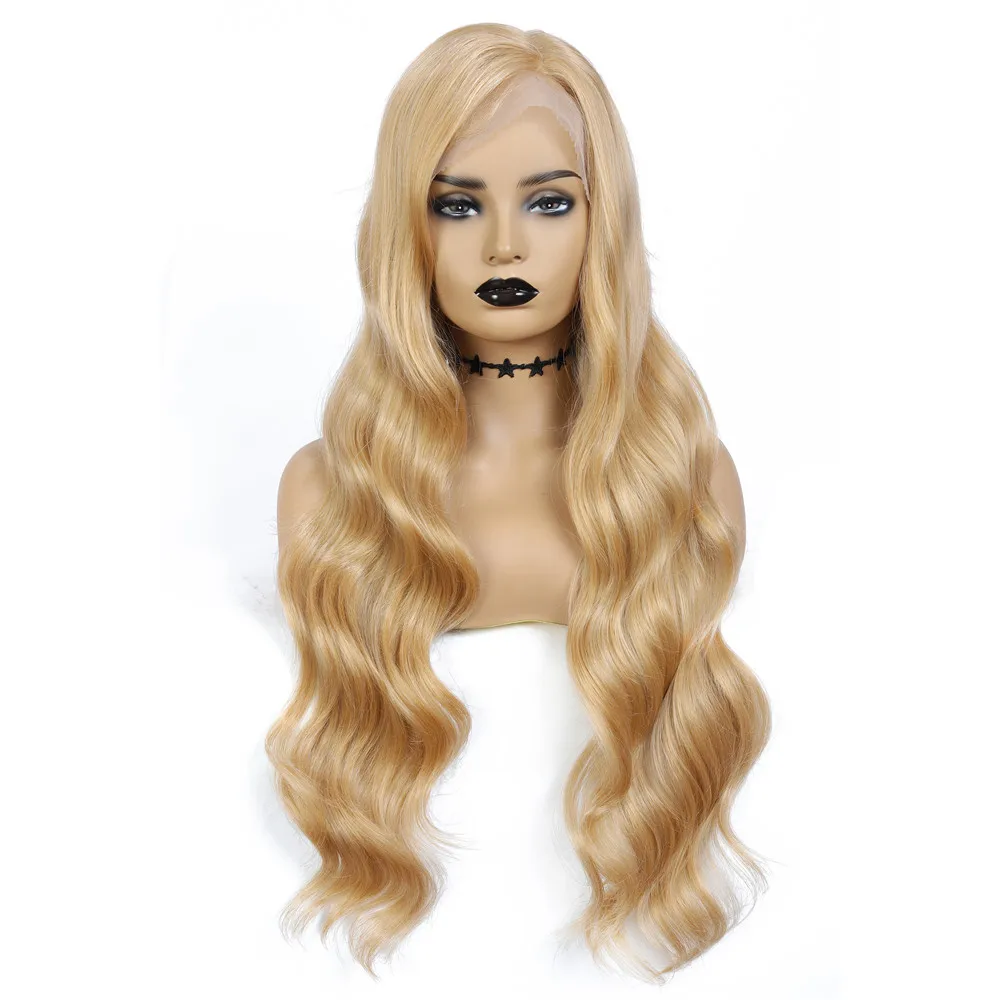 Синтетический парик фронта шнурка X-TRESS 30 дюймов для женщин, модный длинный золотистый парик шнурка с боковой частью, термостойкие парики для косплея