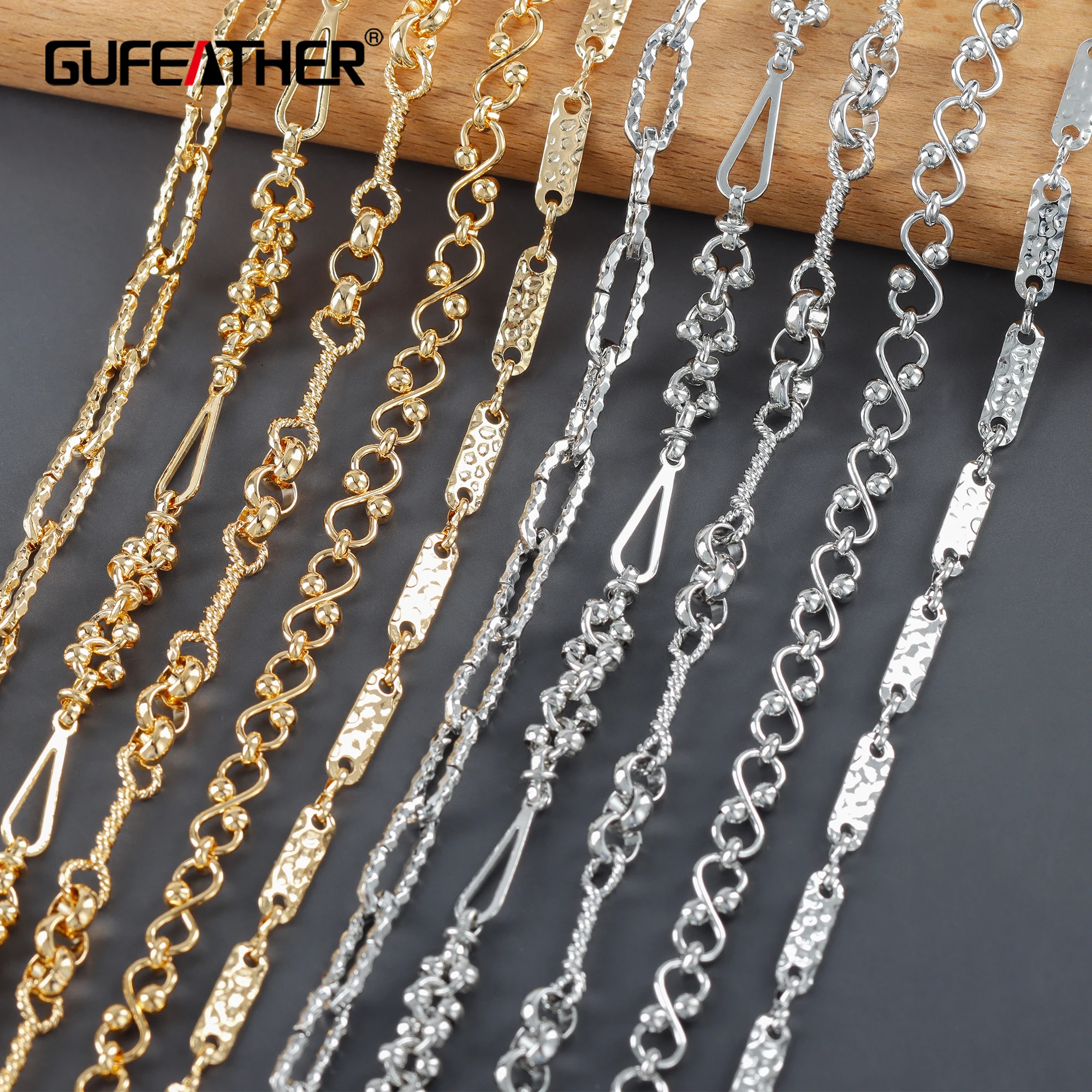 Набор для изготовления ювелирных изделий GUFEATHER, набор цепочек для самостоятельного изготовления ювелирных изделий из меди и металла с покрытием из 18-каратного золота, с родиевым покрытием, 1 млот