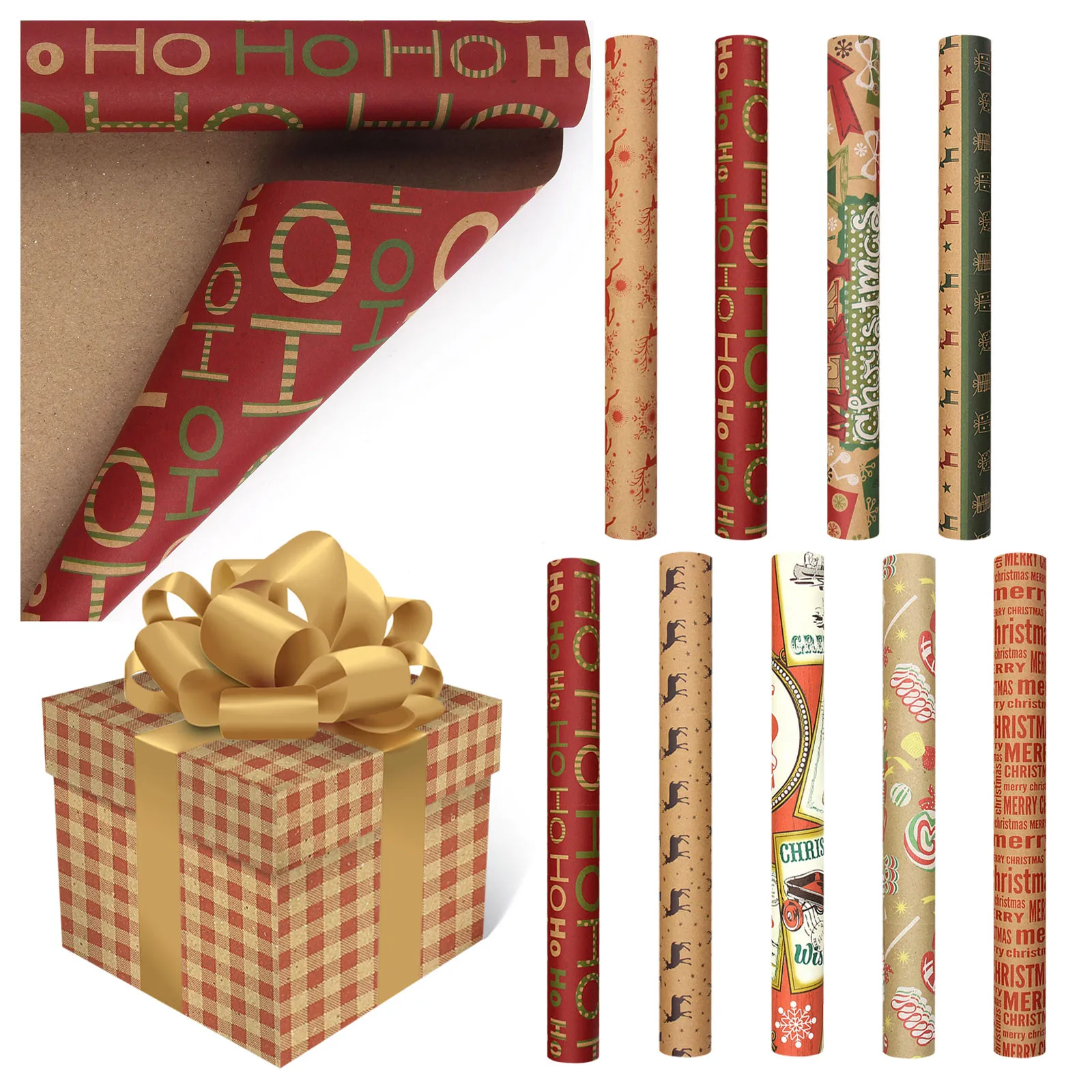Рождественская самодельная упаковочная бумага, набор рождественской...