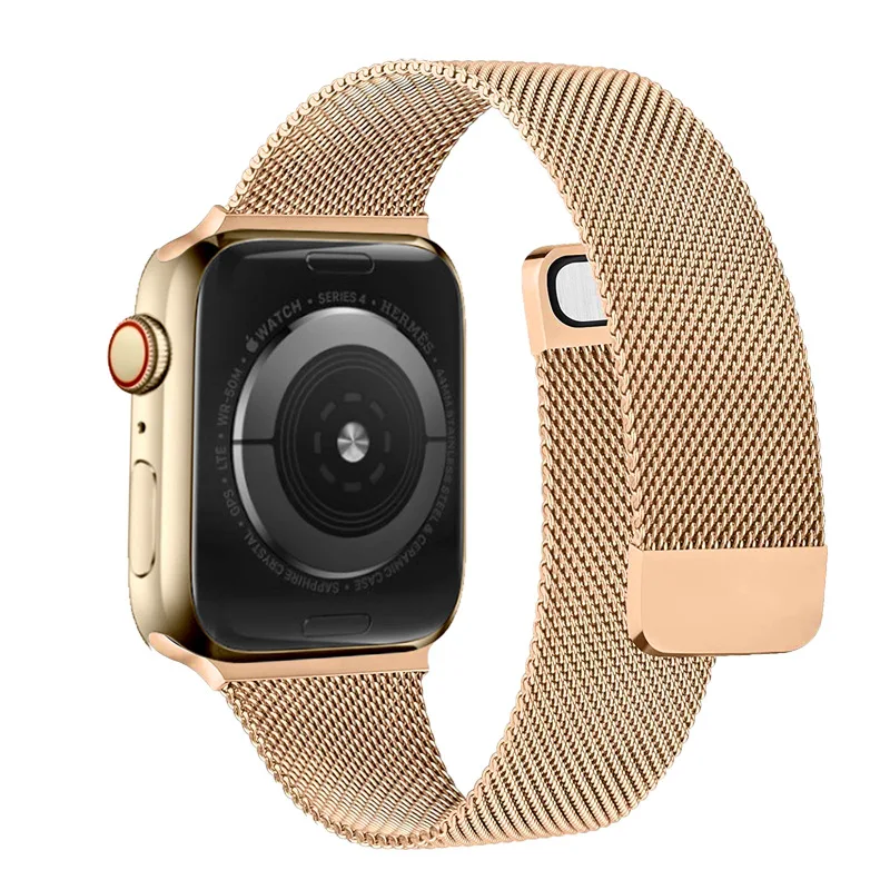 Clasp Type : MagneticItem Type : WatchbandsBand Material Type : MilaneseColor : Black,Silver,Gold,Rose Gold,Rose PinkMaterial: Stainless Steel Clasp: Magnetic loop Suitable for: apple watch series 6 5 4 3 2 1 se 42mm=44mm 38mm=40mm Features: comfortable, breathable, elegant and fashion Package includes1 *Strap, not including smart watch