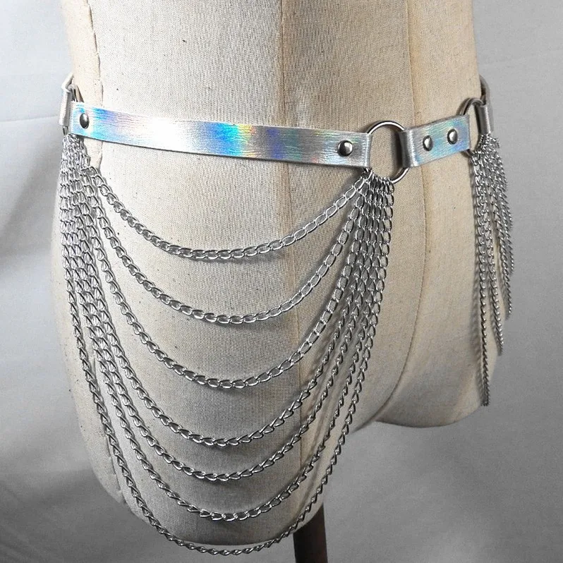 Женский кожаный ремень, портупея цепь, с цепочкой на грудь, в готическом стиле, праздничные украшения