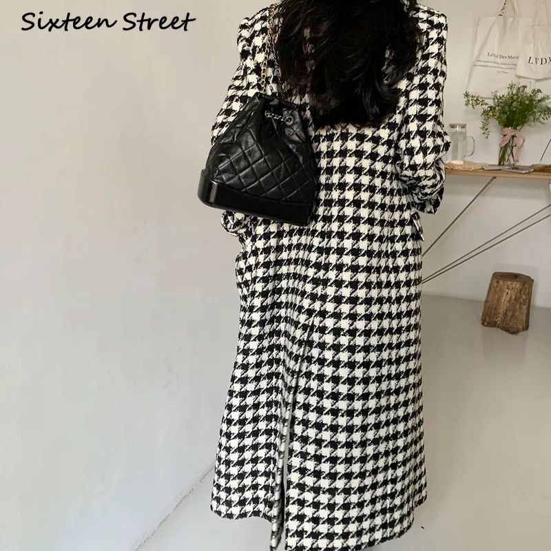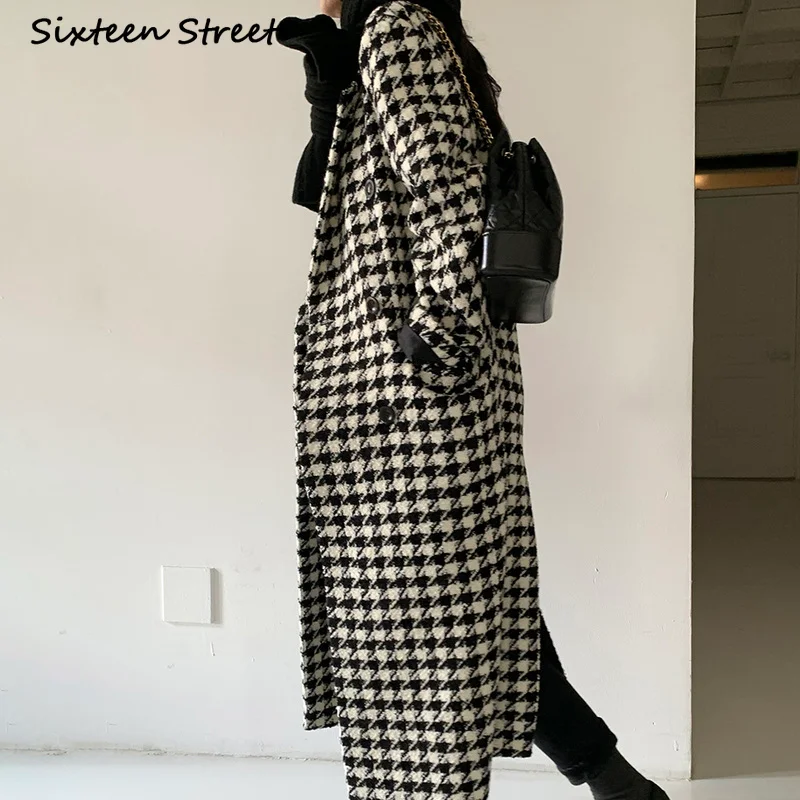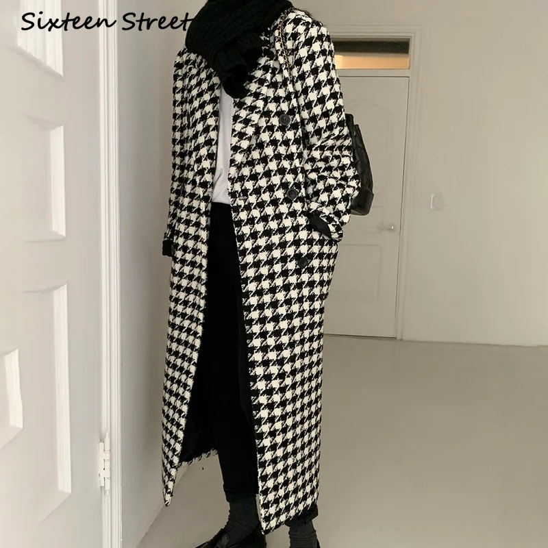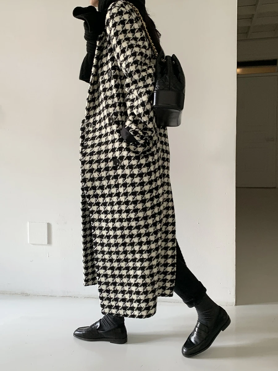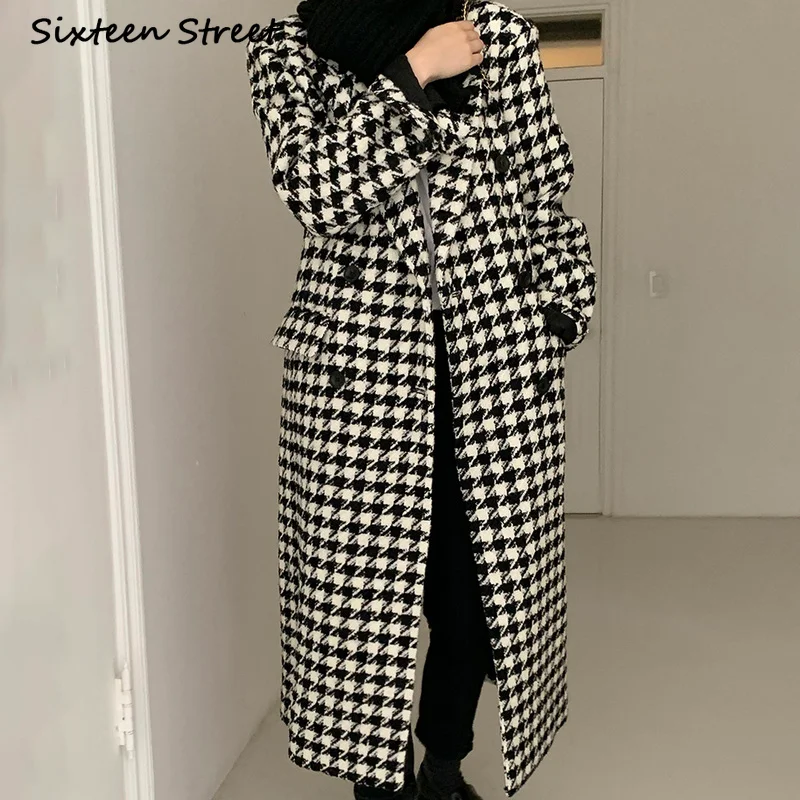 Женское шерстяное пальто с отложным воротником, двубортное длинное пальто из твида с отложным воротником, элегантная винтажная одежда в Корейском стиле, 2021