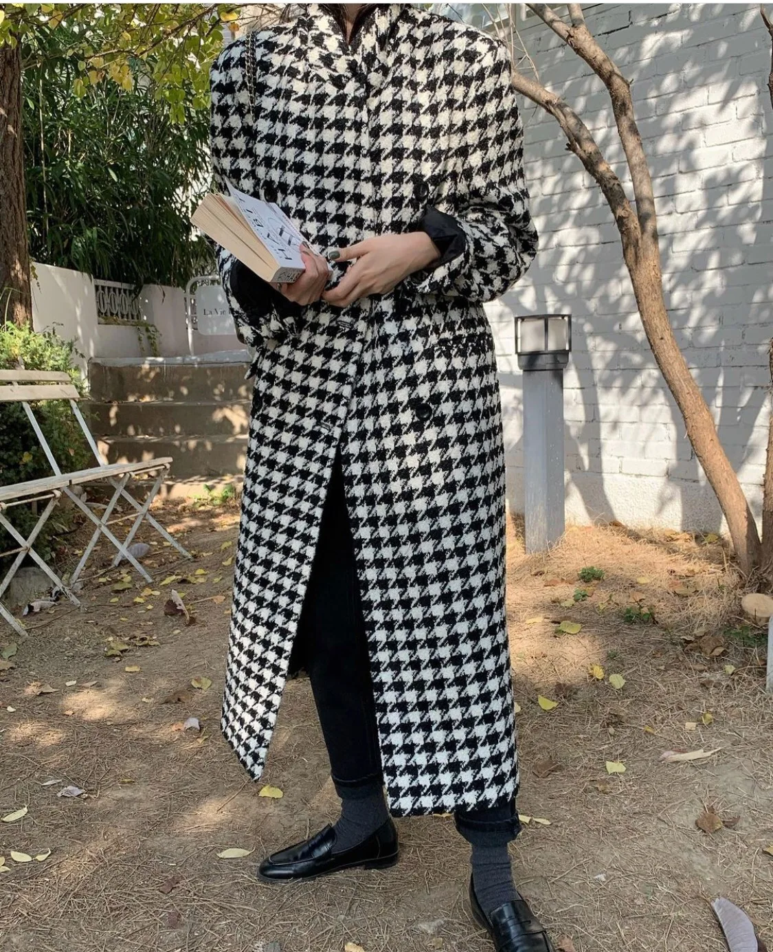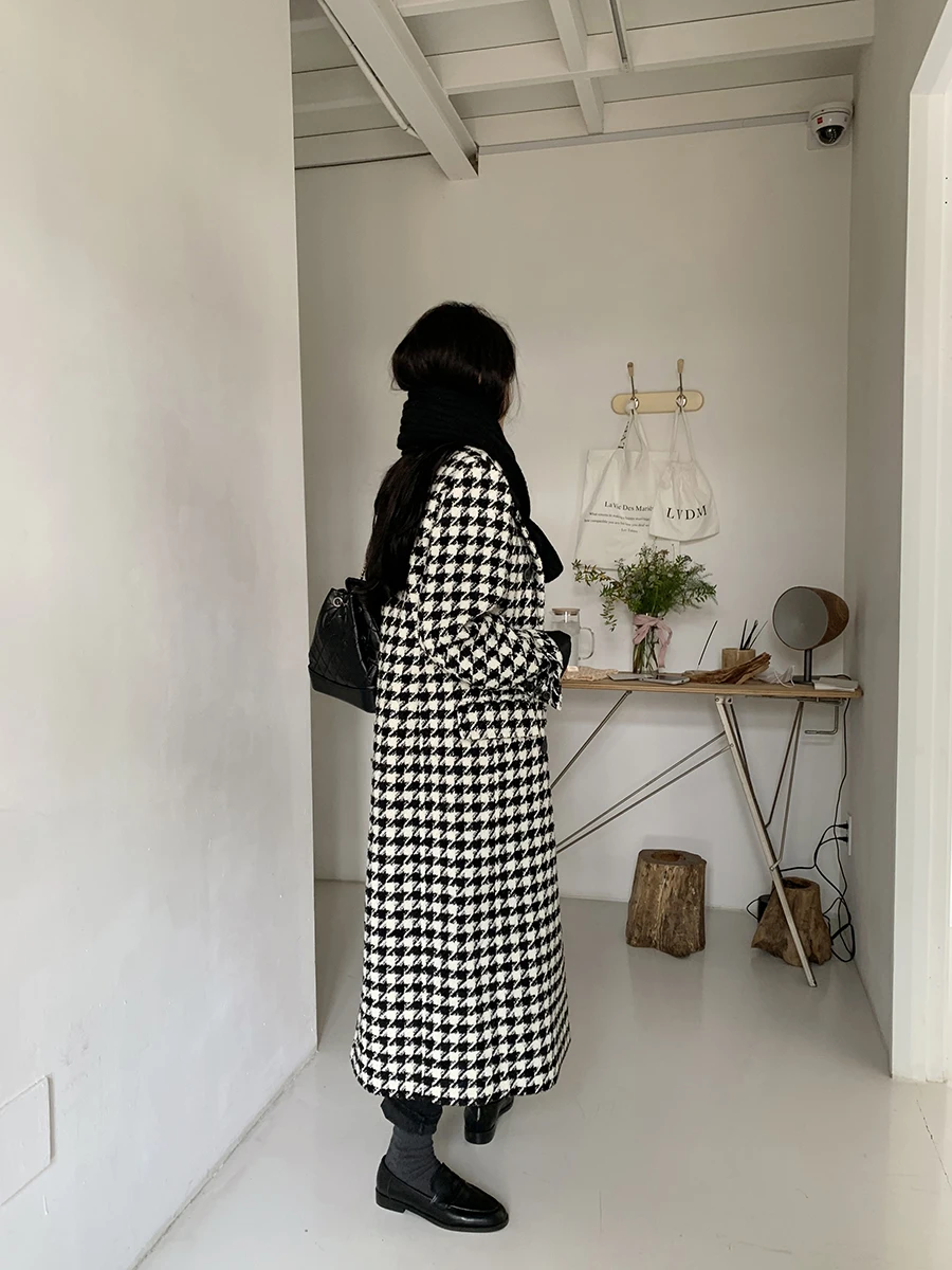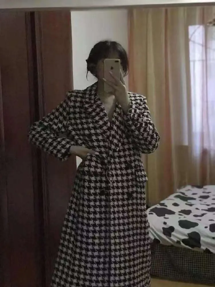 Женское шерстяное пальто с отложным воротником, двубортное длинное пальто из твида с отложным воротником, элегантная винтажная одежда в Корейском стиле, 2021