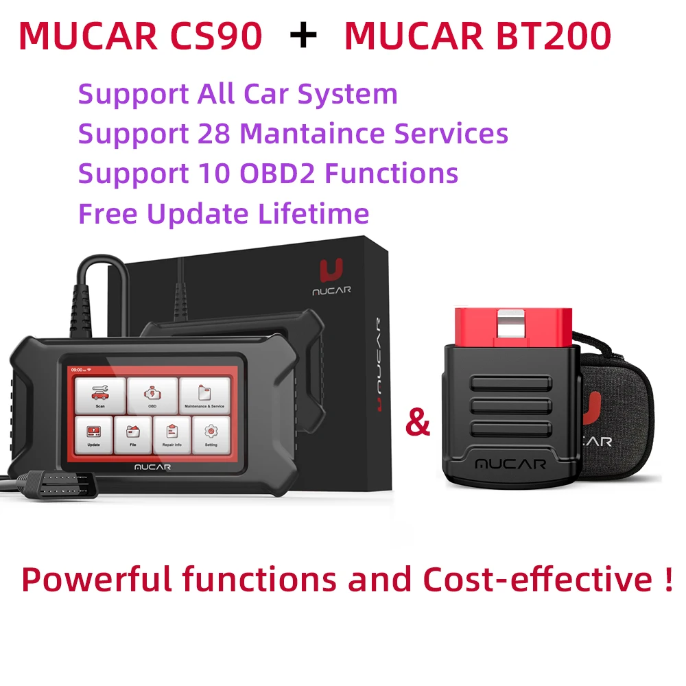 MUCAR CS90 может поддерживать диагностику системы двигателя и 28 сбросов свободного срока службы, MUCAR BT200 может поддерживать все автомобильные системы свободного срока службы. Так что выберите MUCAR CS90 и MUCAR BT200 может поддерживать все автомобильные системы и 28 перезарядок одновременно! Так что это более экономически выгодно!