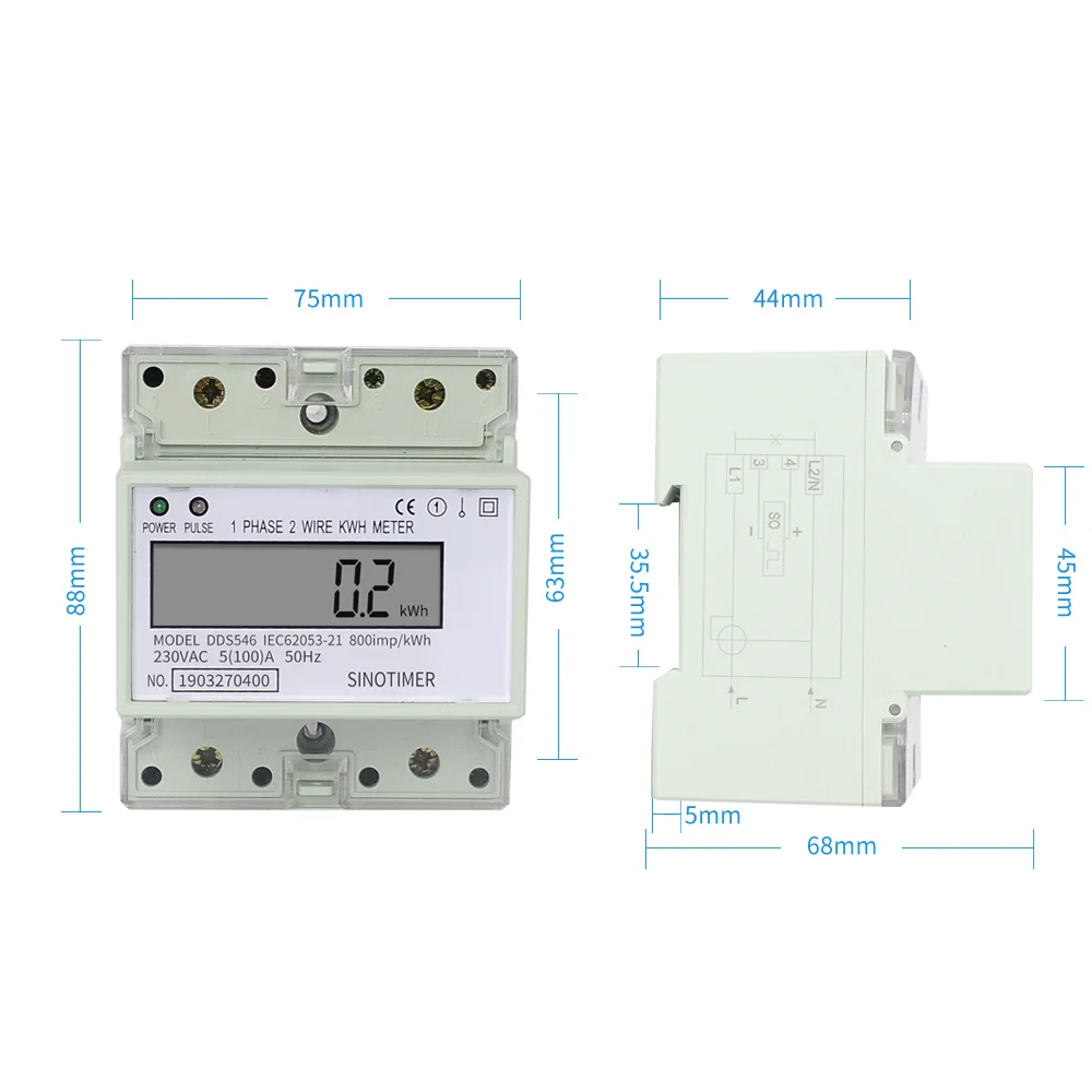 Цифровой однофазный ваттметр с ЖК-дисплеем, 220 В, 230 А, измеритель потребления электроэнергии в кВтч, бытовые мониторы, Din-рейка