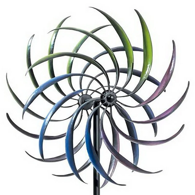 Двухслойная вращающаяся ветряная мельница радужного цвета, кованый железный Спиннер, уличная садовая декоративная стойка для газона