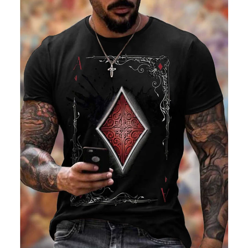 Футболка мужская с коротким рукавом и круглым вырезом, оверсайз рубашки, повседневная одежда, свободные топы с принтом карт, Ace Spades