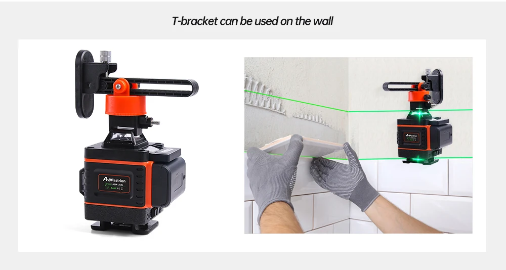 Лазерный уровень A-BF оснащен настенным кронштейном и подъемной платформой, которая может проектировать 360 градусов по вертикали и горизонтали для достижения точного и гибкого выравнивания. В нижней части есть внутренняя резьба 1/4 дюйма. Мы можем зафиксировать его на штативе или другом монтажном основании для удобного позиционирования.Вы можете вращать лазерный уровень на 360 градусов, чтобы проектировать линии в любом положении или под любым углом