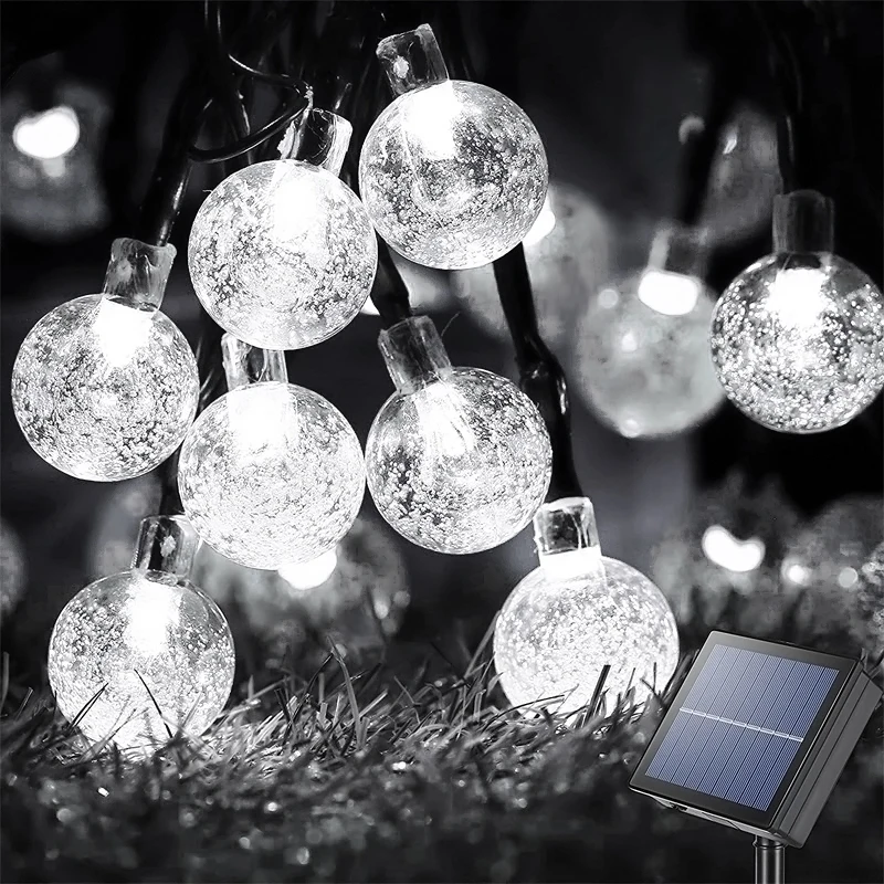 Уличная Рождественская светодиодная гирлянда на солнечной батарее, 8 режимов, водонепроницаемые лампы-шары для украшения сада Вечерние