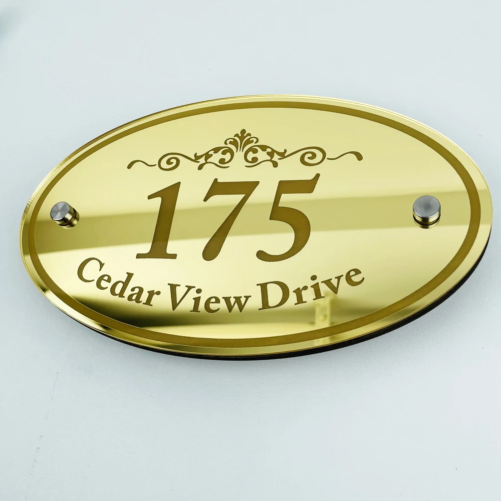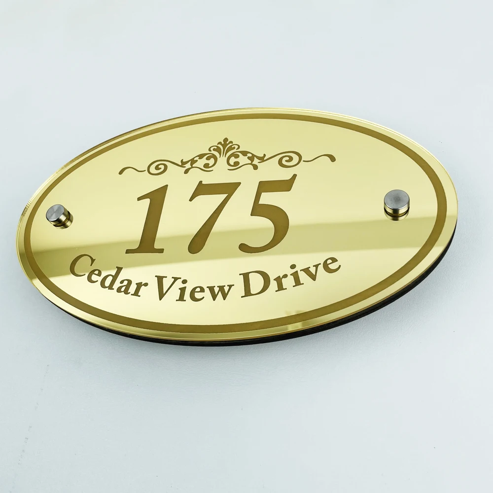 Дверная табличка, зеркальная, акриловая, золотистаясеребристая, со стеклянным эффектом, на заказ, знак на дом