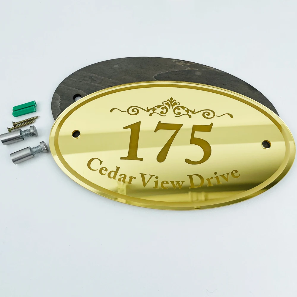 Индивидуальный современный знак на дом налет дверной номер зеркало золотое серебро акриловое уличное имя стеклянный эффект акриловый дверной номер