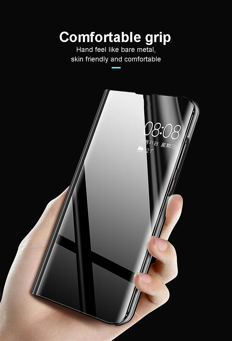 Особенности:1. Уникальный и умный дизайн сна/пробуждения, делает Автоматическое включение/выключение дисплея, открывая/закрывая флип, эффективно увеличивает срок службы батареи, добавляя больше удобства.2. Умный зеркальный флип-чехол, быстрый просмотр SMS, звонков, даты, времени и т. Д.3. Покрытие зеркальной поверхности, может использоваться как зеркало.4. Идеально сочетается с формой вашего телефона и делает его персонализированным и Поглощающим.5. Он может защитить ваш телефон от отпечатков пальцев, царапин, пыли, столкновений и истирания.6. Уникальный дизайн обеспечивает легкий доступ ко всем кнопкам, элементам управления и портам без необходимости снимать чехол.
