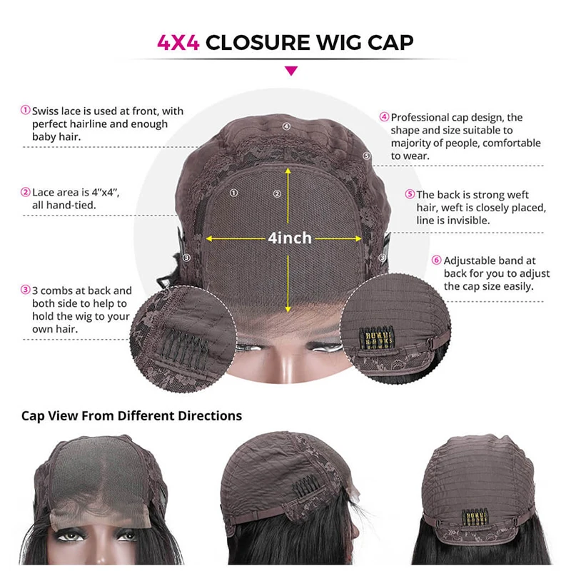 Волосы ночного клуба 30 дюймов 4x4 кружева закрытие парик