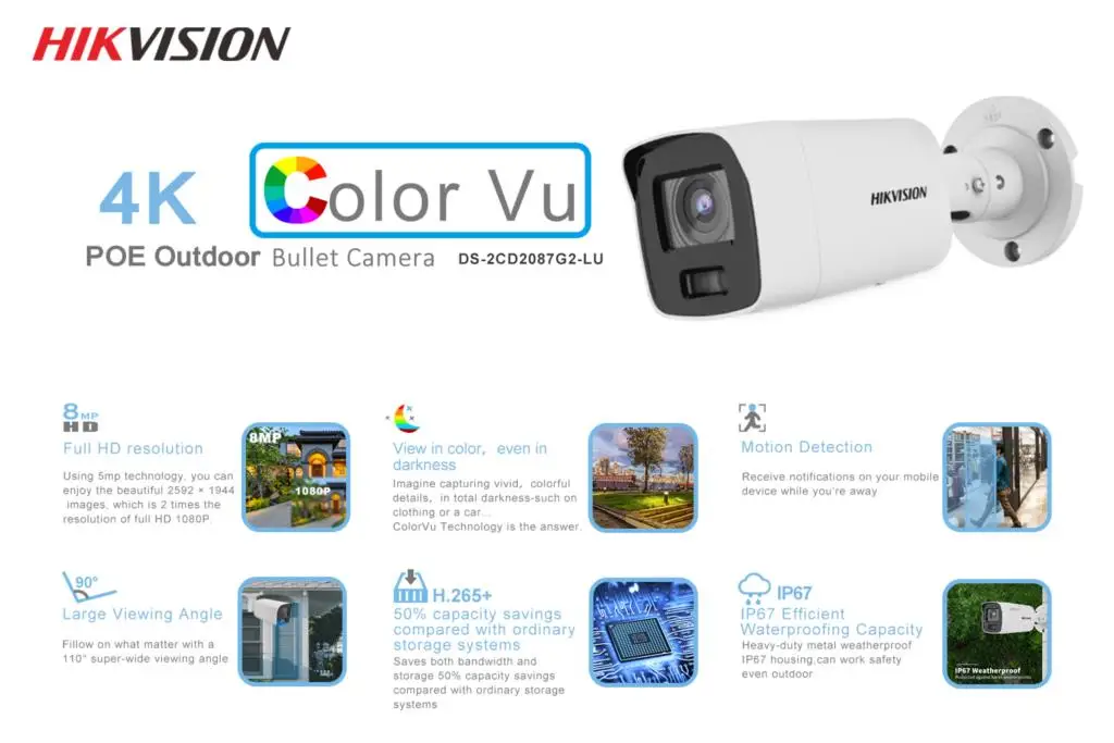 Hikvision ip-камера 4K 8MP Bullet DS-2CD2087G2-LU цветная Vu сеть AcuSense PoE микрофон видео наблюдение полный цвет H.265 +
