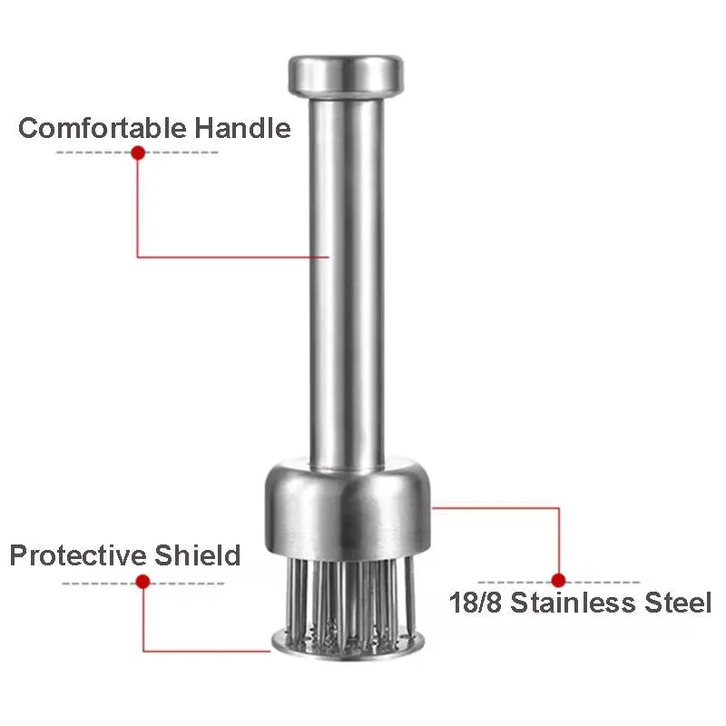 Профессиональный tenderiser для мяса из нержавеющей стали 304 сохраняет форму и внешний вид мяса, когда делает мясной тендеризатор knuckle, создает крошечные проходы в мясе, чтобы сократить время приготовления до 40% и помочь сохранить оригинальный вкус и вкус.