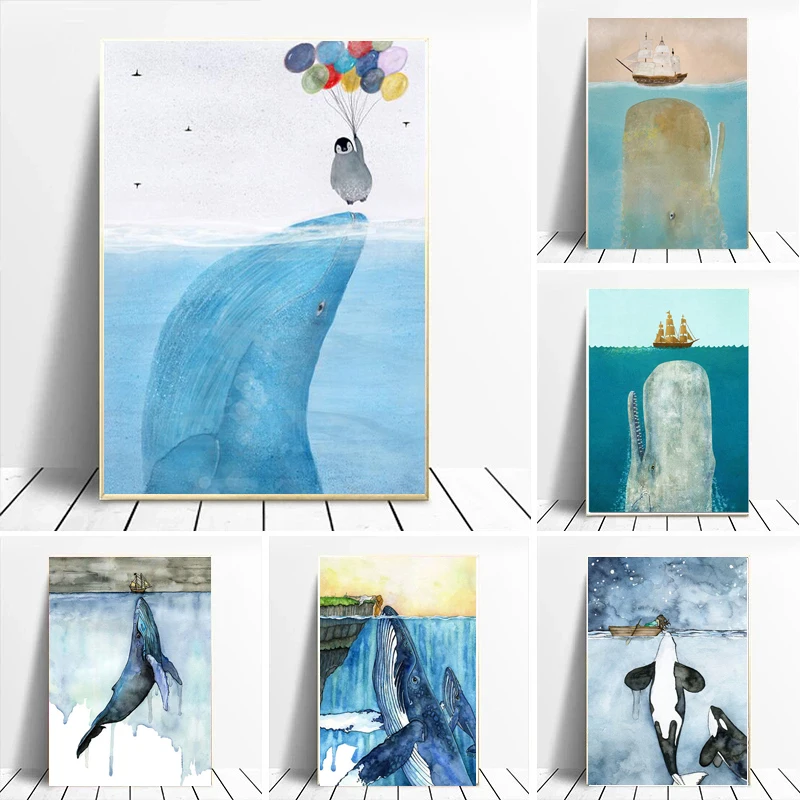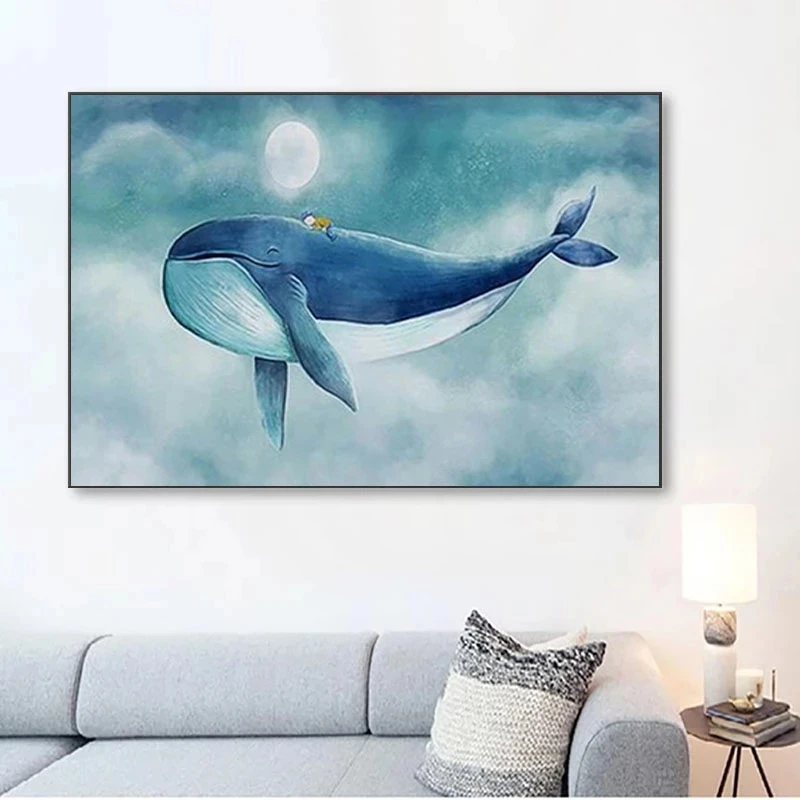 Мультяшные животные, синий кит, искусство на стене, картины, плакаты и принты для гостиной, детской, спальни, украшение для дома icon star icon star icon star icon star icon star