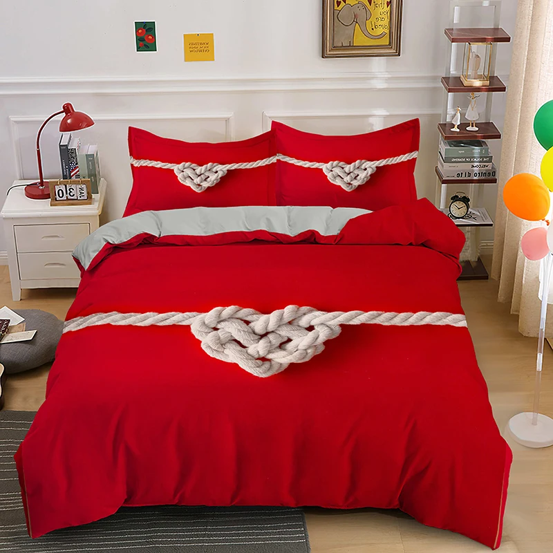 Романтический Комплект постельного белья с красной розой, пододеяль...