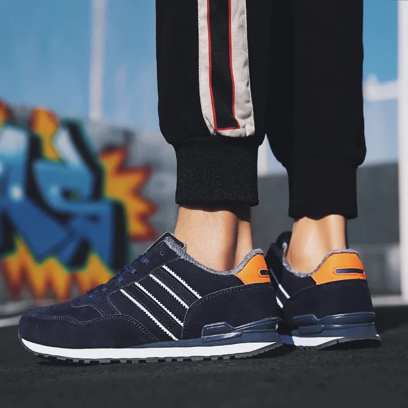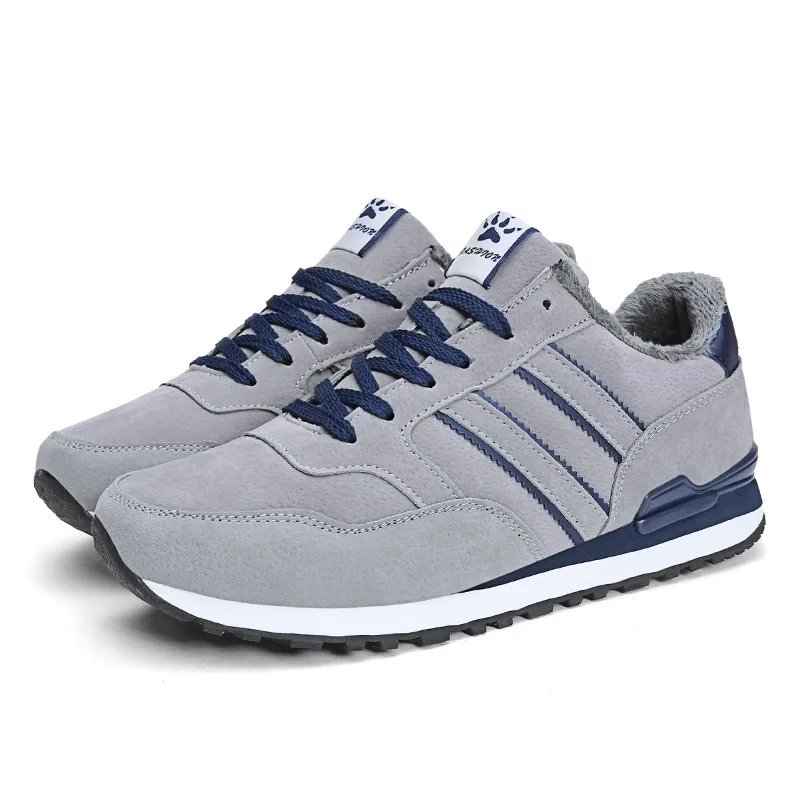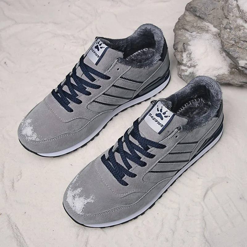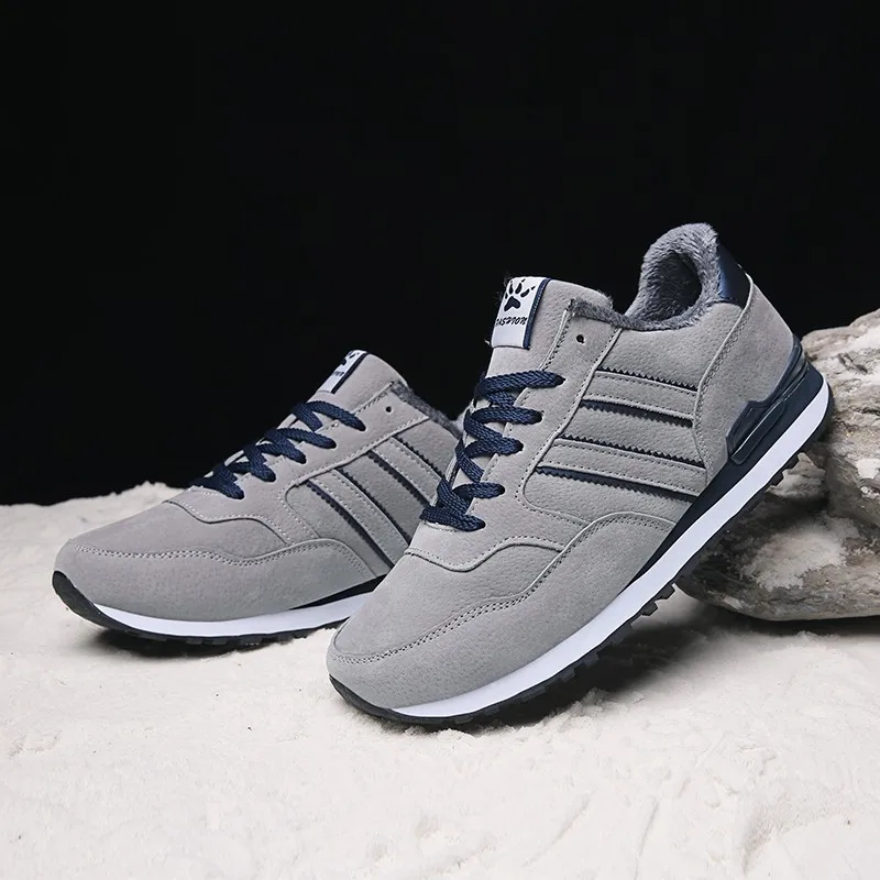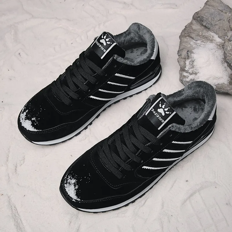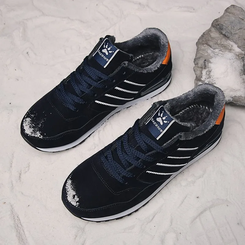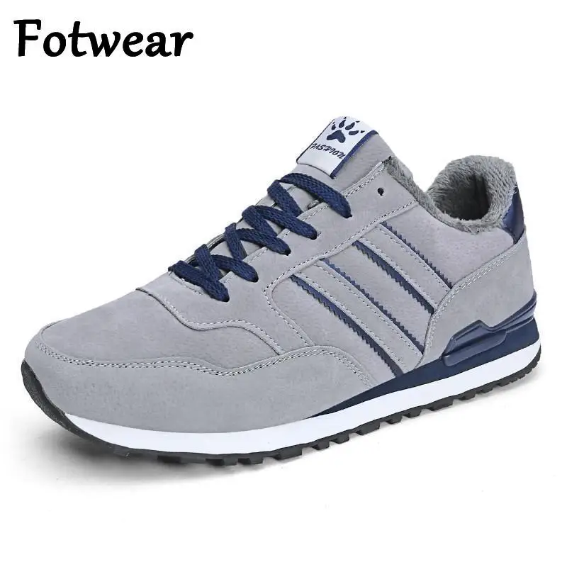 Кроссовки мужские Зимние Замшевые, повседневная обувь на шнуровке, плюшевые теплые, с мехом, плоская подошва, ручная работа, для бега