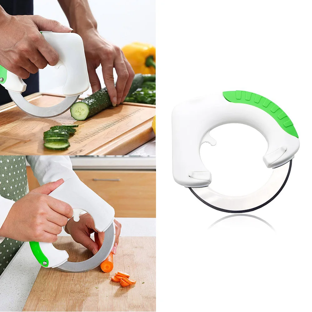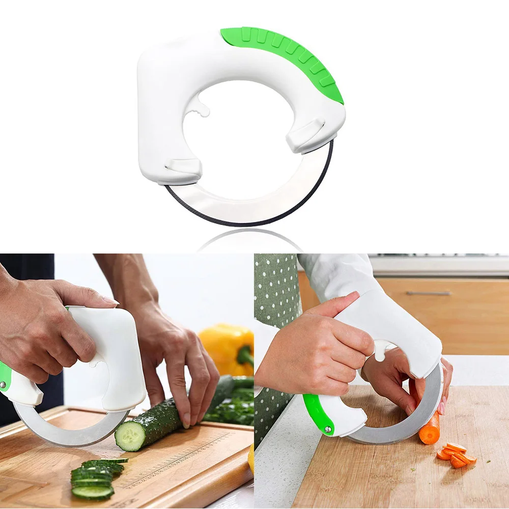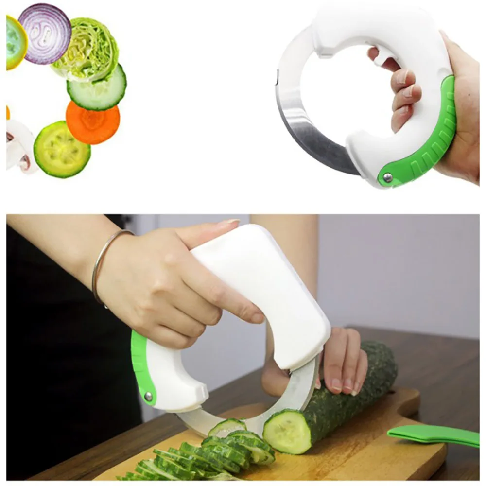Гуманизированная ручка Круглый резак для овощей разработан с гуманной ручкой, которая является противоскользящей и удобной для пользователей, чтобы держать в течение длительного времени. Лезвие в форме кольца Круглый резак для овощей принимает острое лезвие в форме кольца. Это удобно для пользователей, чтобы свернуть Круглый резак для овощей и быстро разрезать вещи. Легко чистить Круглый резак для овощей легко чистить. Его нужно только мыть под водой. Многофункциональный Подвижное движение делает его особенно полезным для нарезки предметов, с острым лезвием, что позволяет ему проходить через все, от овощей и фруктов до хлеба и мяса. Безопасный Круглый Измельчитель имеет Пластиковые ножны для защиты лезвия и вашего тела Характеристики: Модель: круглый резак для овощей Количество: 1 шт. Материал: нержавеющая сталь Цвет: зеленый Размер: 17,7*17*3 см/6,96*6,68*1,18 "(Д * Ш * В) Вес нетто: 130 г/4,59 унций Упаковка: 1 * круглый кухонный нож