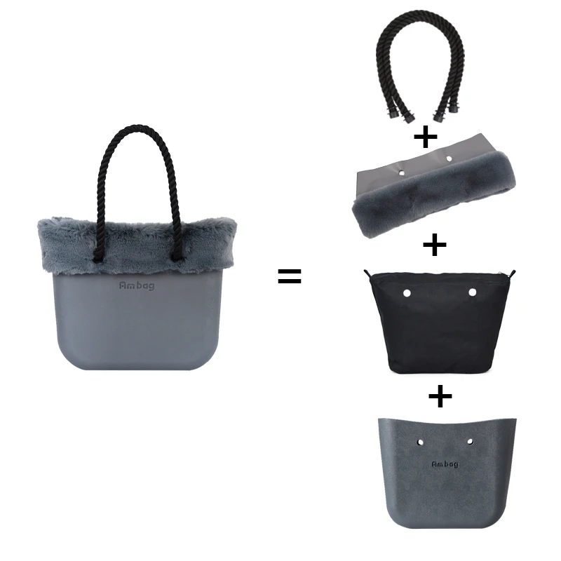 Зимняя Классическая сумка Tanqu Obag O Bag, самодельная сумка из ЭВА с однотонной молнией, внутренние длинные веревочные ручки, Искусственный Кролик, плюшевая отделка