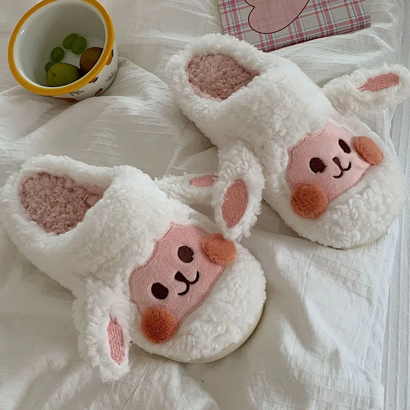 Зимние тапочки, Женская плюшевая повседневная женская мягкая удобная теплая обувь для дома, женская обувь с пушистыми кроличьими ушками