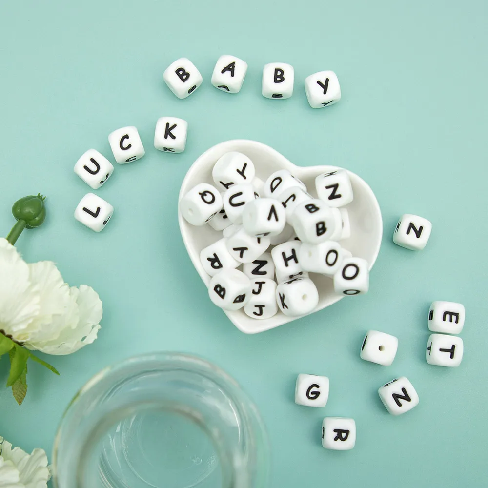 TYRY.HU, 50100500 шт., силиконовые буквы, бусины, цветной Английский алфавит, силиконовые жевательные бусины, сделай сам, детские игрушки для прорезывания зубов, подвеска 12 мм