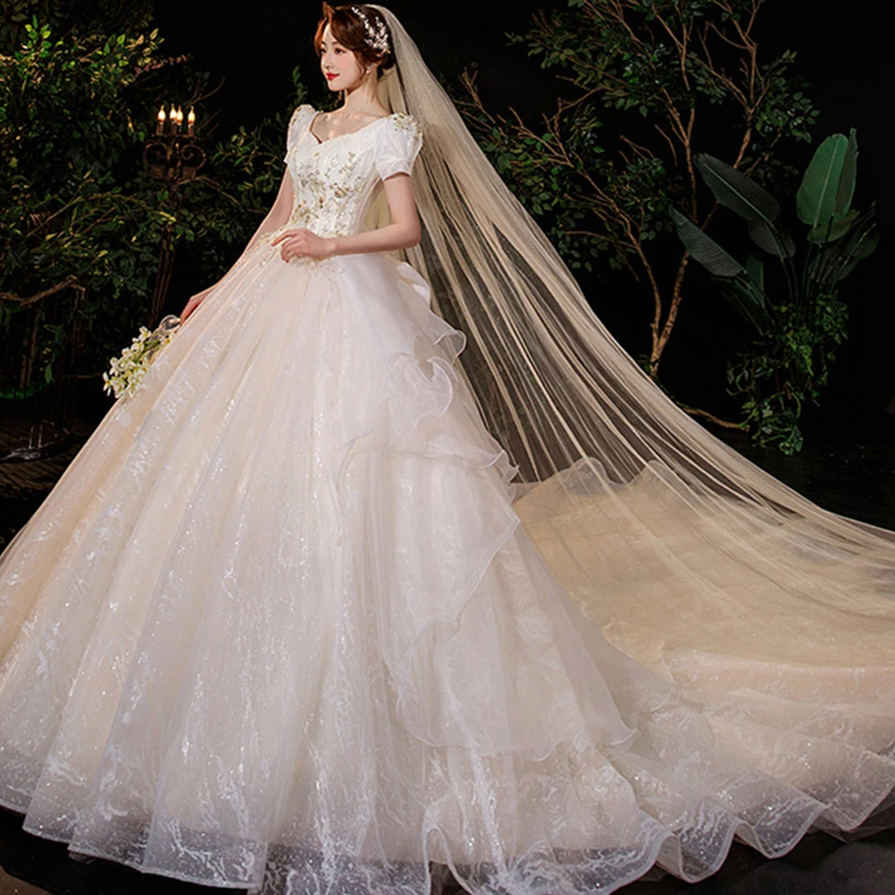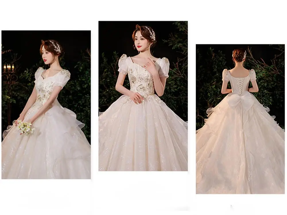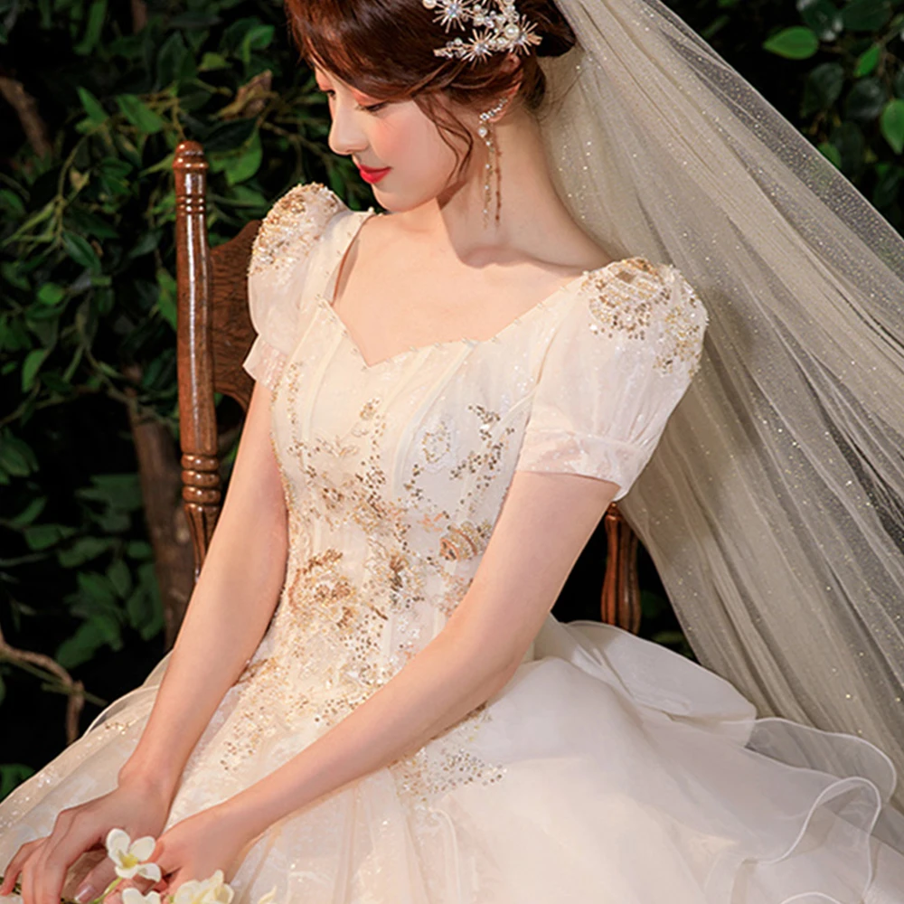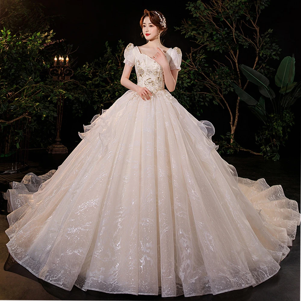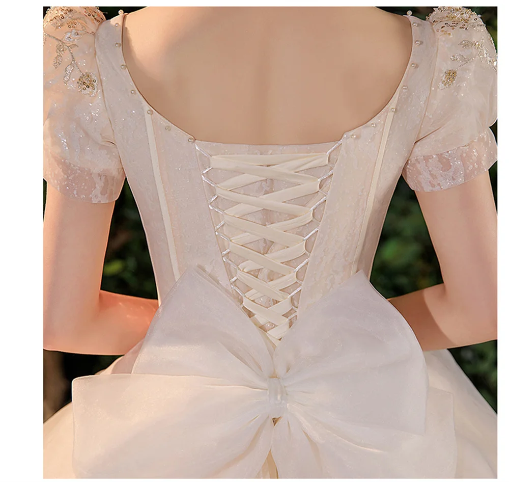 Женское винтажное свадебное платье Dioflyusa, роскошное кружевное платье принцессы с бантом и пышными рукавами, элегантное платье невесты цвета шампанского, 2021