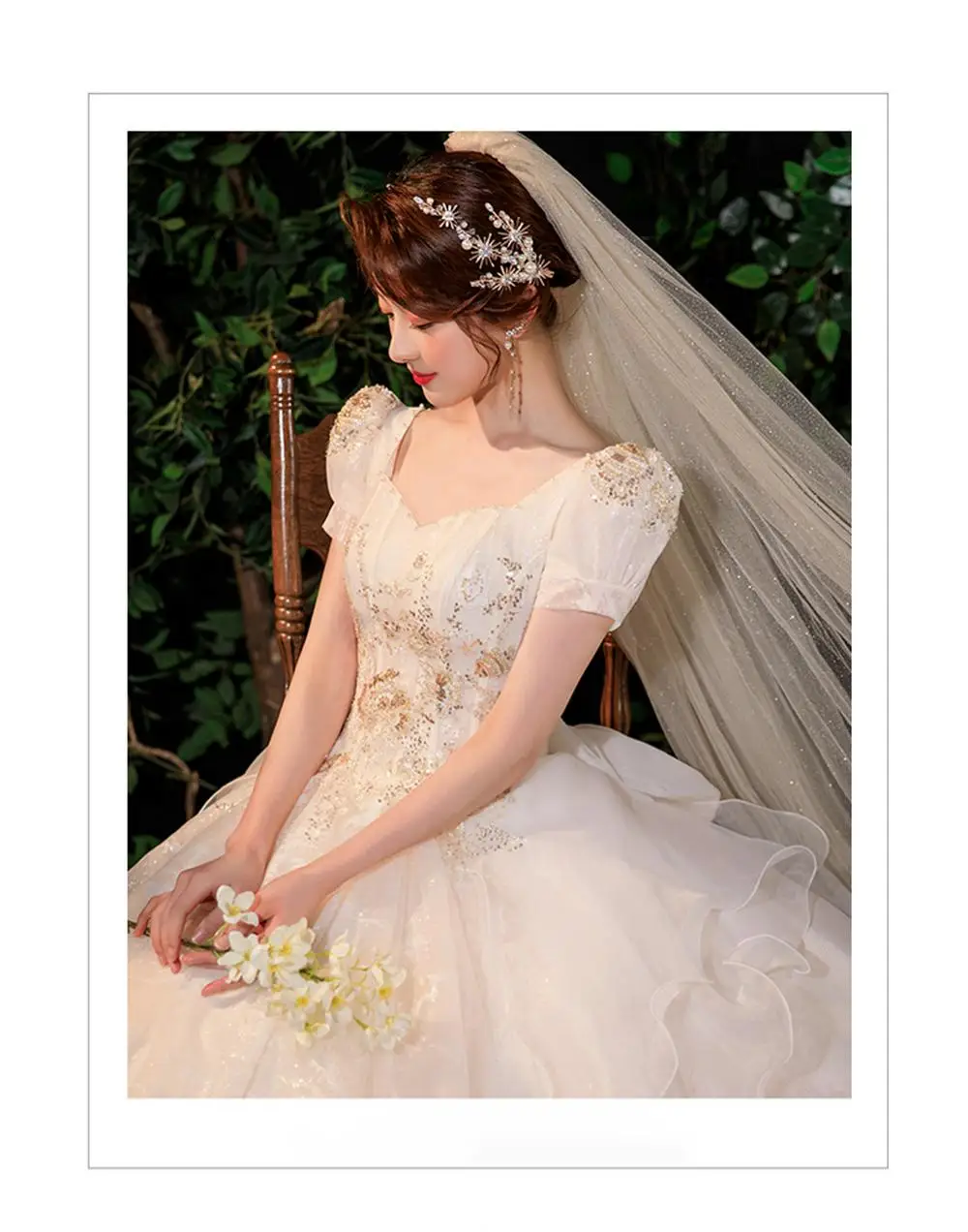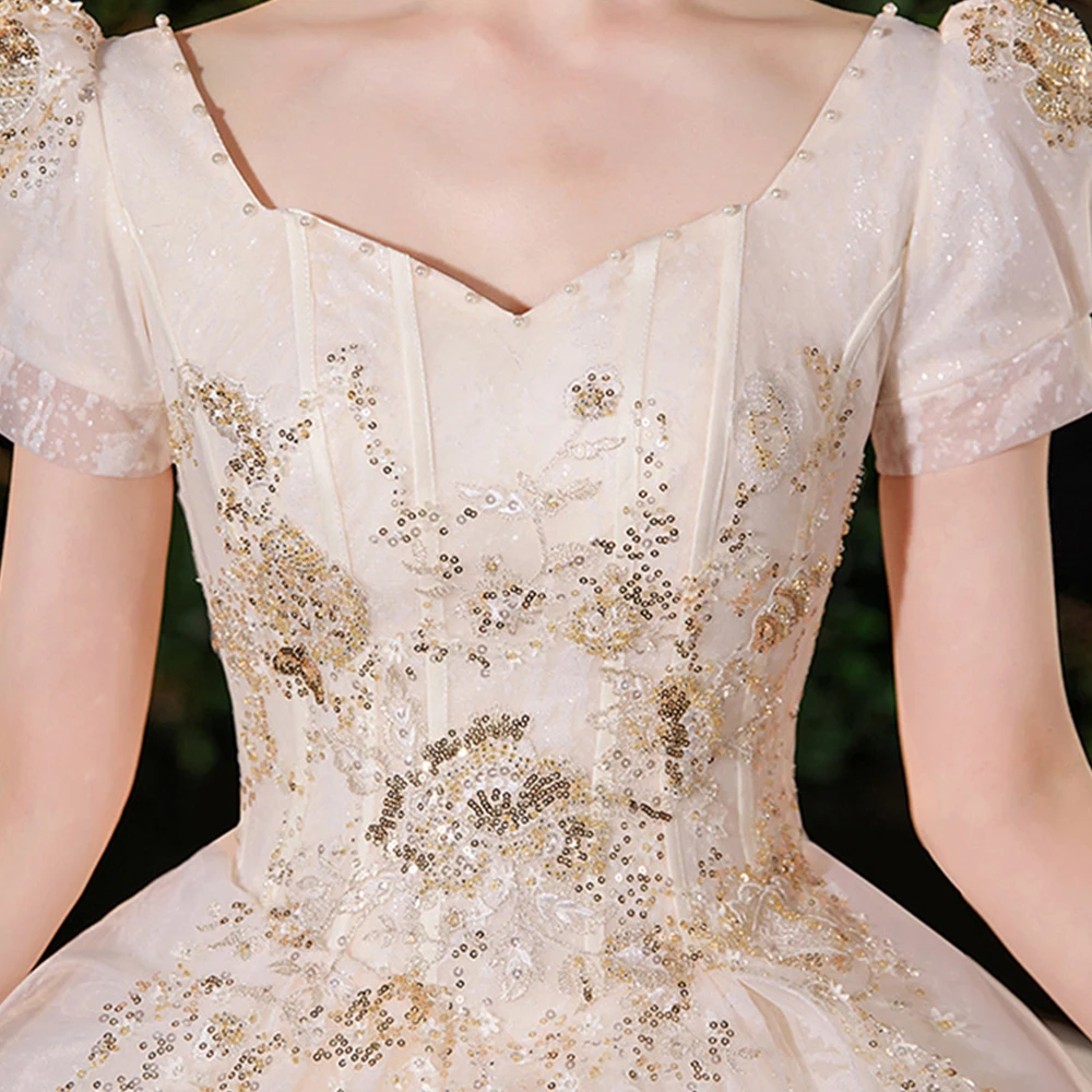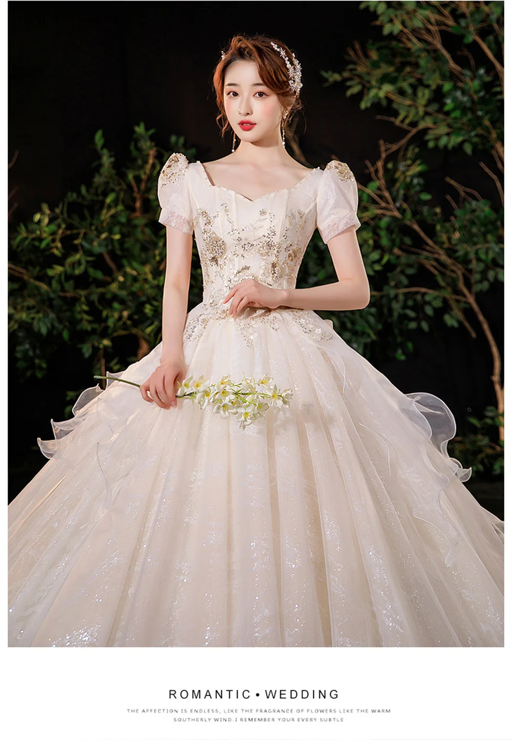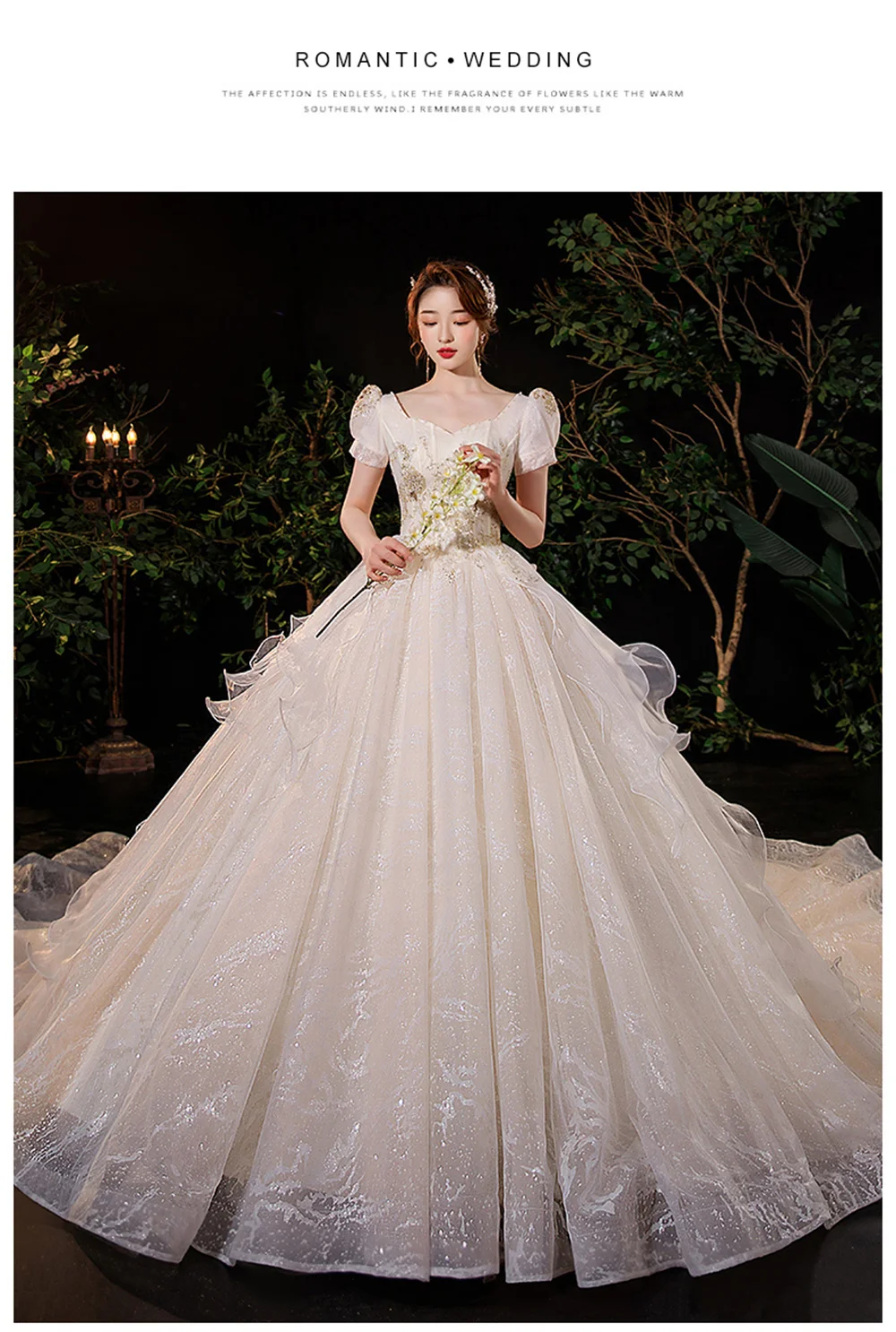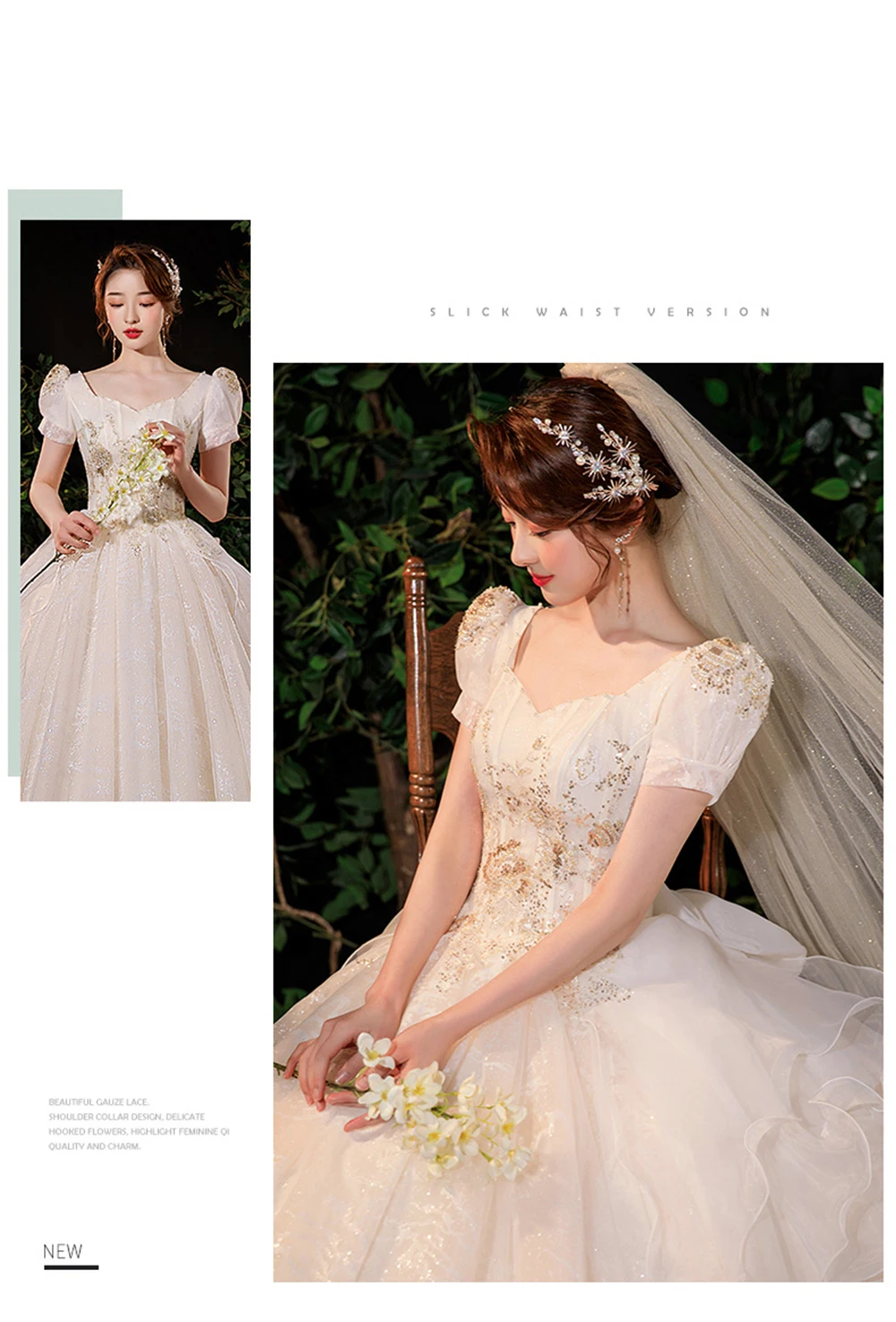 Женское винтажное свадебное платье Dioflyusa, роскошное кружевное платье принцессы с бантом и пышными рукавами, элегантное платье невесты цвета шампанского, 2021