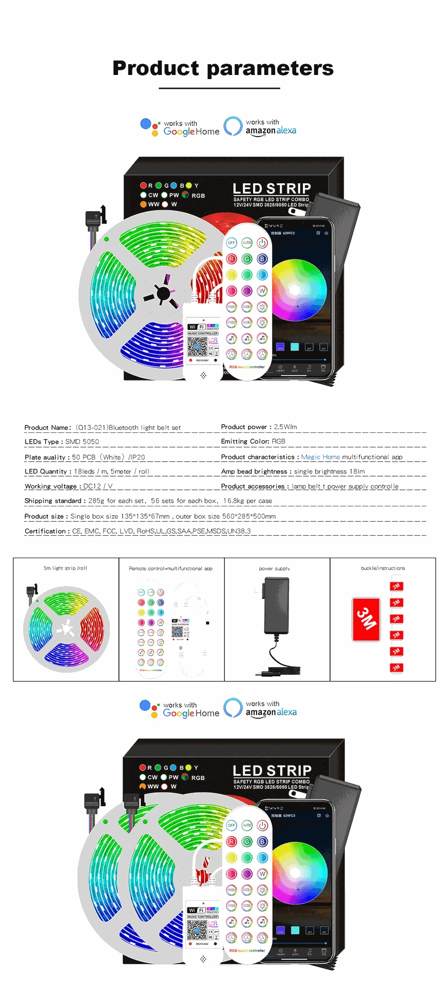 Светодиодные RGB-ленты с поддержкой Bluetooth, 12 В, 5050, 0,5 м, 1...