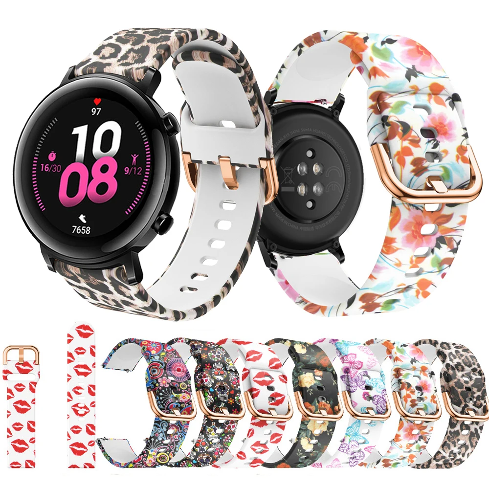 20 мм силиконовый ремешок с принтом для Huawei GT 2 42 мм, Смарт-часы, спортивный браслет для Honor Magic 2 42 мм/ES, аксессуары для наручных часов
