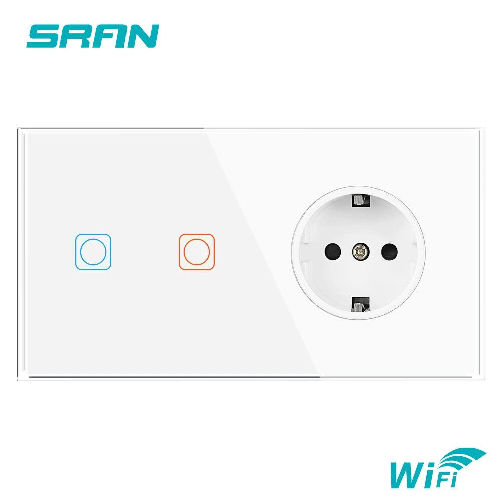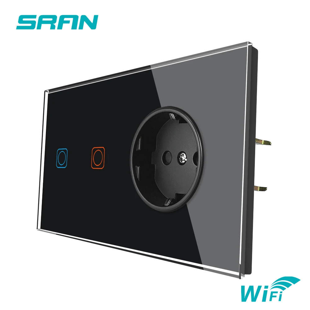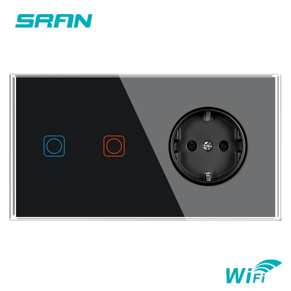 SRAN Новый Умный Wi-Fi переключатель и электрические розетки, полная плоская кристаллическая стеклянная панель, 153*82 мм ЕС умный переключатель с розеткой