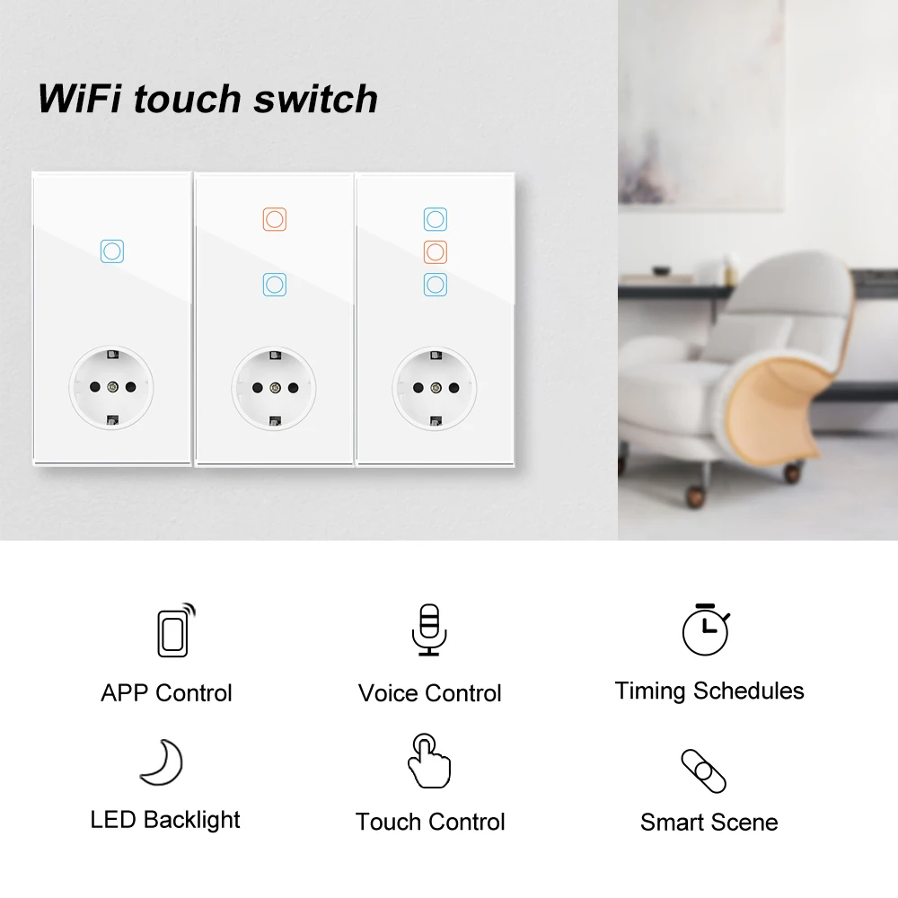 1. Включение/выключение света из любого места2. Бесплатное мобильное приложение для iOS и Android Tuya3. Легко заменяет старый настенный светильник 864. Статус устройства в режиме реального времени предоставляется приложению5. Установка таймеров запланированного/обратного отсчета для включения/выключения в указанное время6. Управляйте своим умным домом вместе с семьей7. Включение/выключение устройства одним нажатием8. Включение/выключение при температуре, влажности или других условиях окружающей среды9. Отлично работает с Apple HomeKit,Google Nest,Amazon Echo