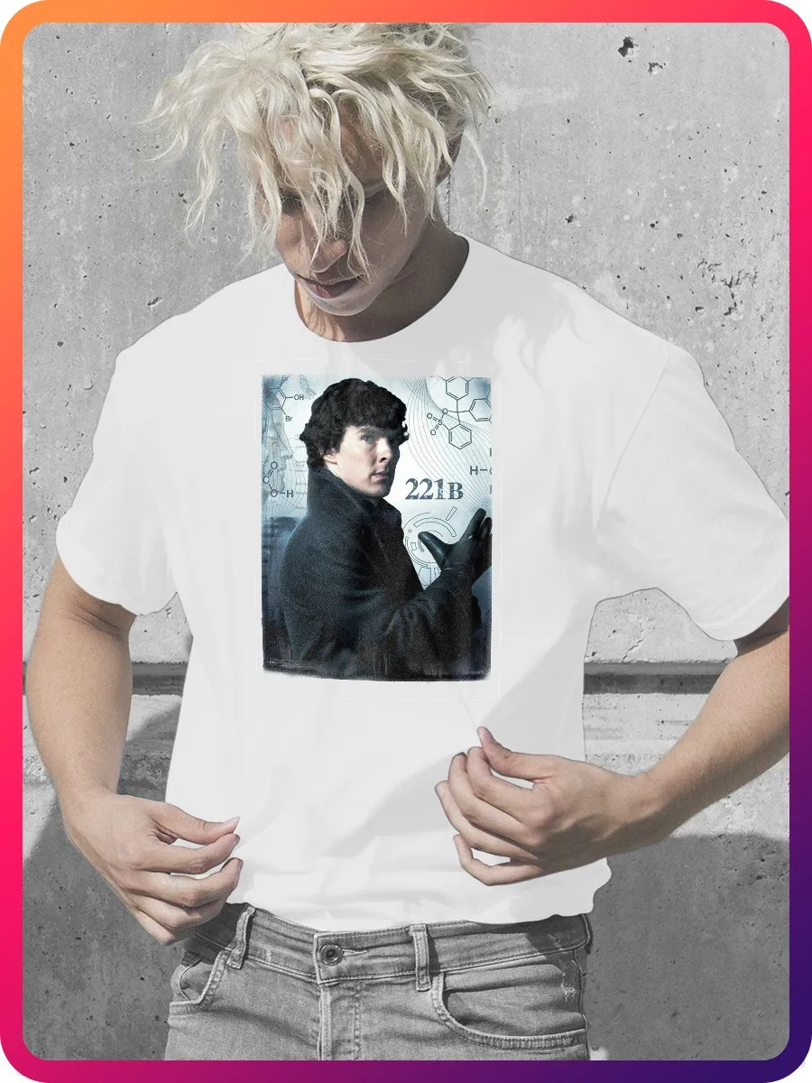 Футболка мужская белая Шерлок (Sherlock, сериал, дететив, Шерлок Холмс, Ватсон, Бенедикт Камбербэтч, Мориарти) 7179