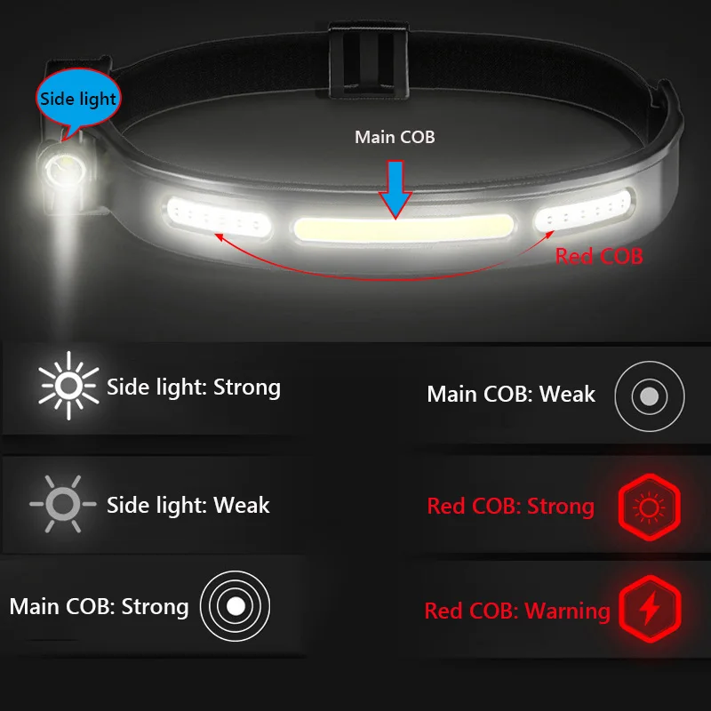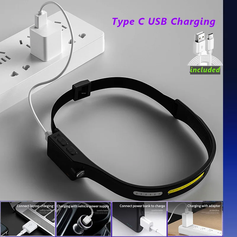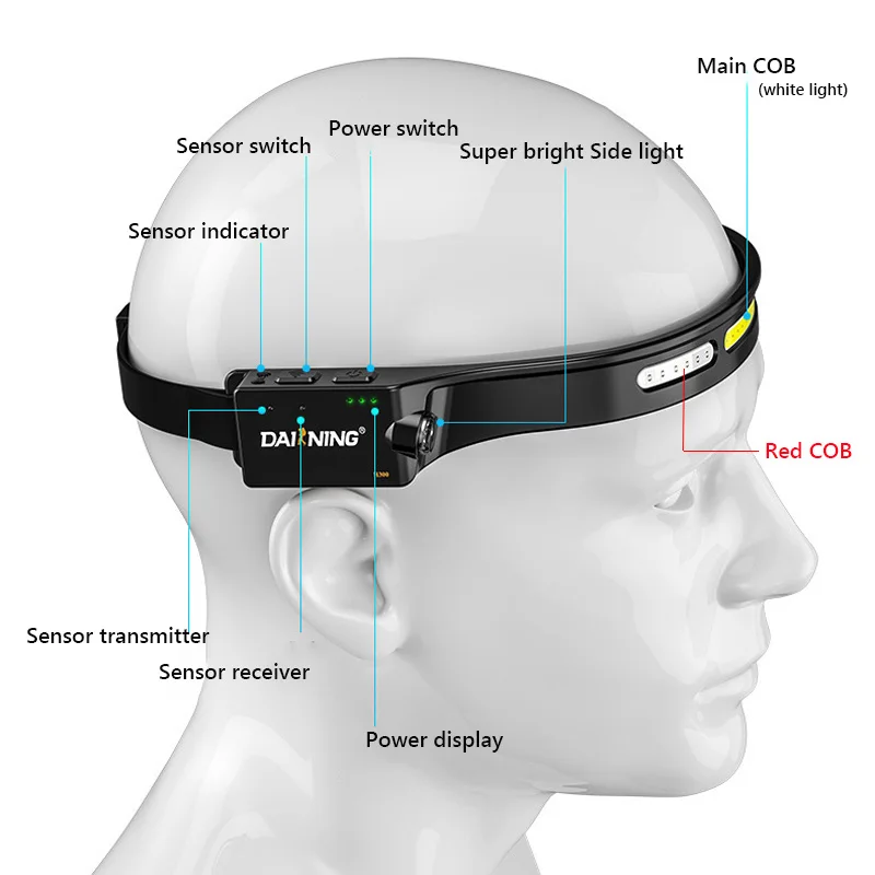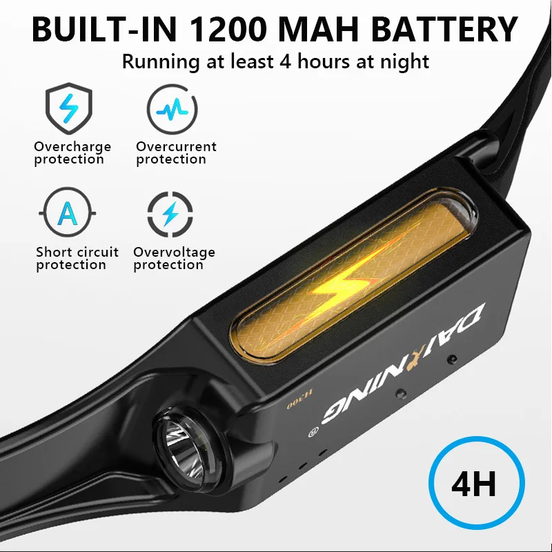 Налобный фонарь с датчиком и встроенным аккумулятором, 1200 лм, мА ч