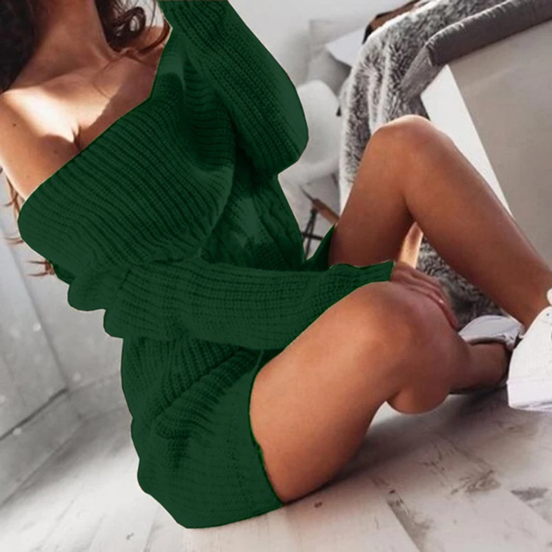 Вязаное платье с открытыми плечами, женское платье-свитер с длинным...