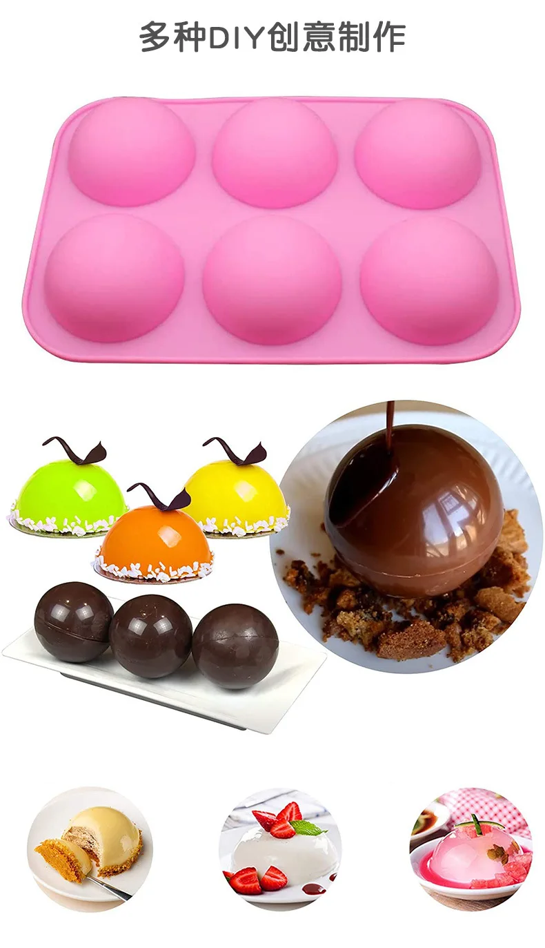 6 ячеек, полусфера, силиконовая зернистая форма для домашнего пудин...
