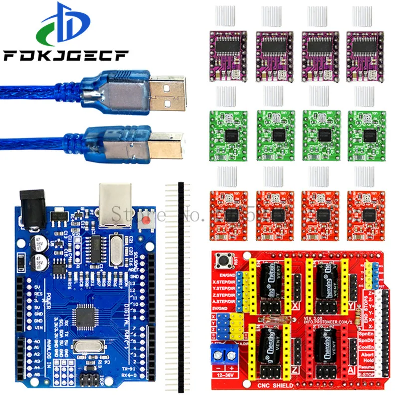 UNO R3 с 30 см USB-кабелем + ЧПУ щит V3 гравировальная машина 3D печать + 4 шт. A4988 DRV8825 Плата расширения драйвера для Arduino