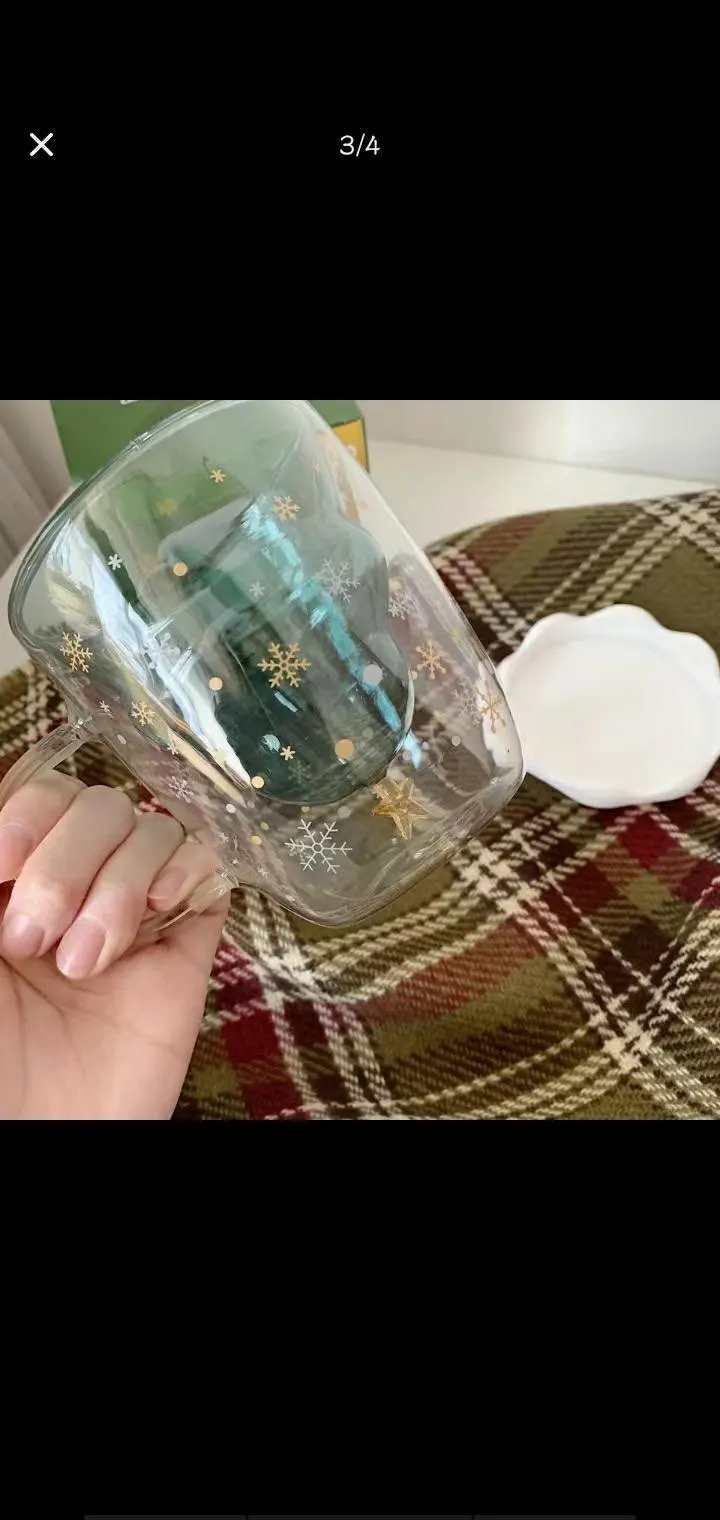 Чашка очень красивая, с маленькими снежинками, звездами и рождественскими елками, она имеет рождественские ощущения. Обычно он хорошо выглядит на столе. Вы можете выбрать эту чашку для рождественских подарков. Это действительно красиво. Это тонкое и легкое стекло, не очень тяжелое, двухслойная конструкция, если вы пьете горячую воду или горячий кофе, это не сгорит вас