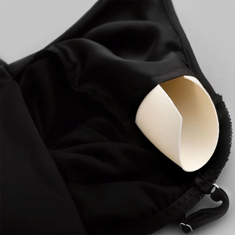 Пижама женская атласная, пикантный Шелковый пижамный комплект, одежда для сна, мягкая ночная рубашка, домашняя одежда с нагрудными подушечками, Осень-зима