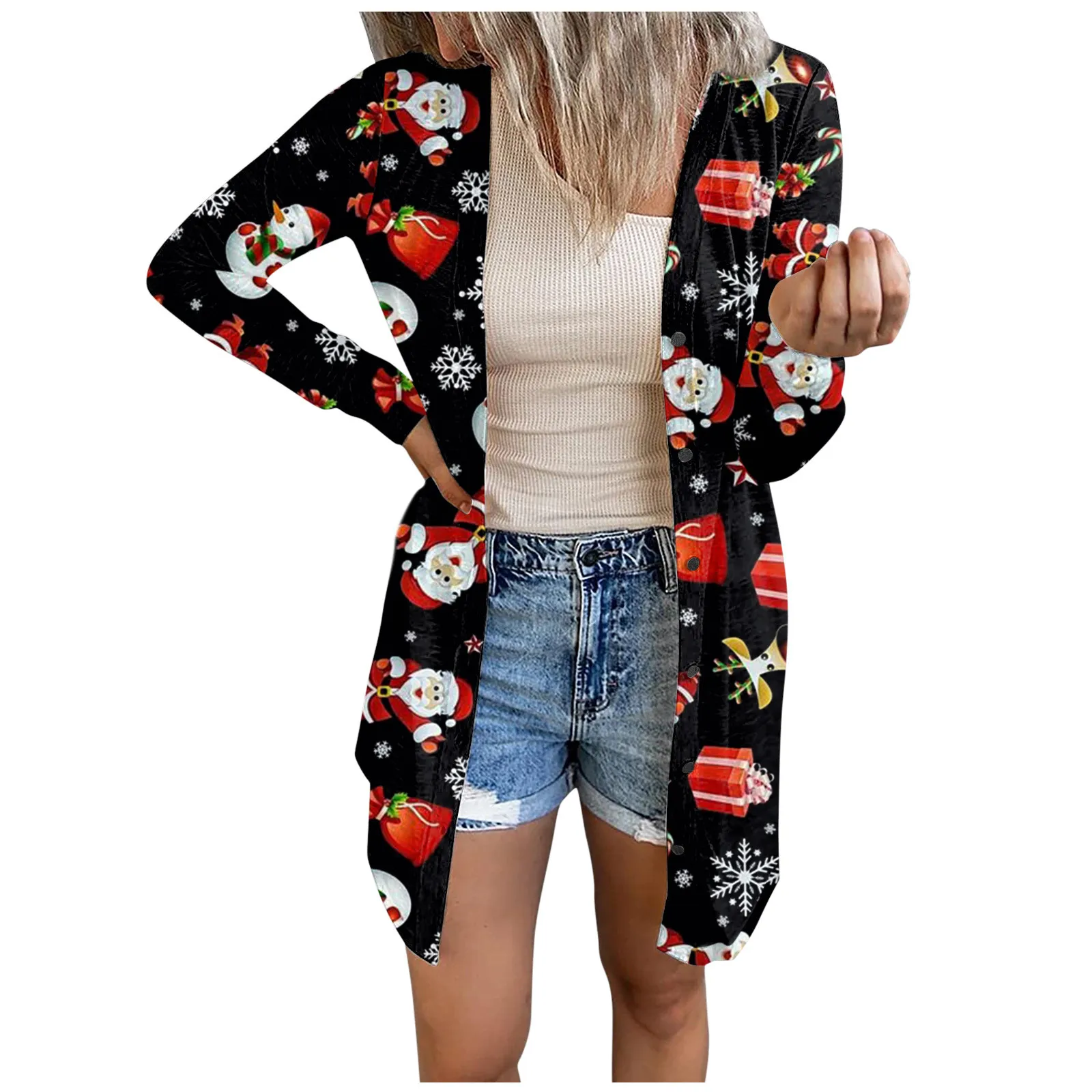 Женский Повседневный модный Рождественский кардиган с v-образным вырезом и длинными рукавами, верхняя одежда с карманами