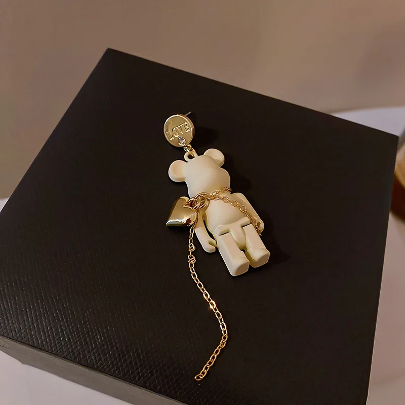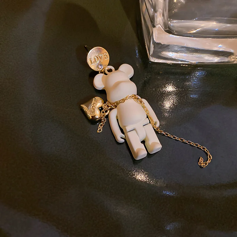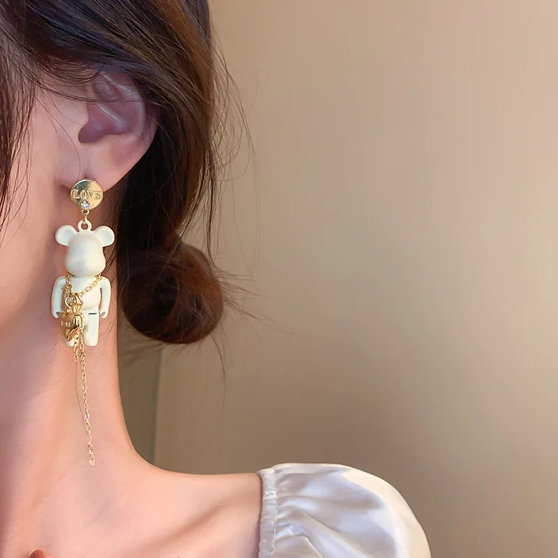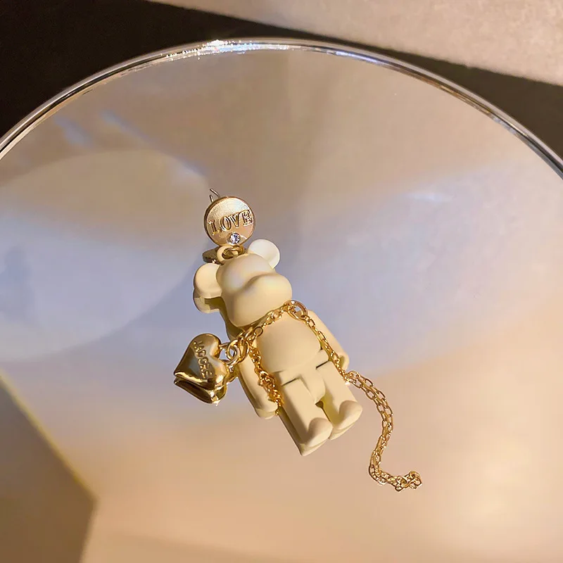 Серьги-подвески в виде медведя из белого мультфильма золотого цвета