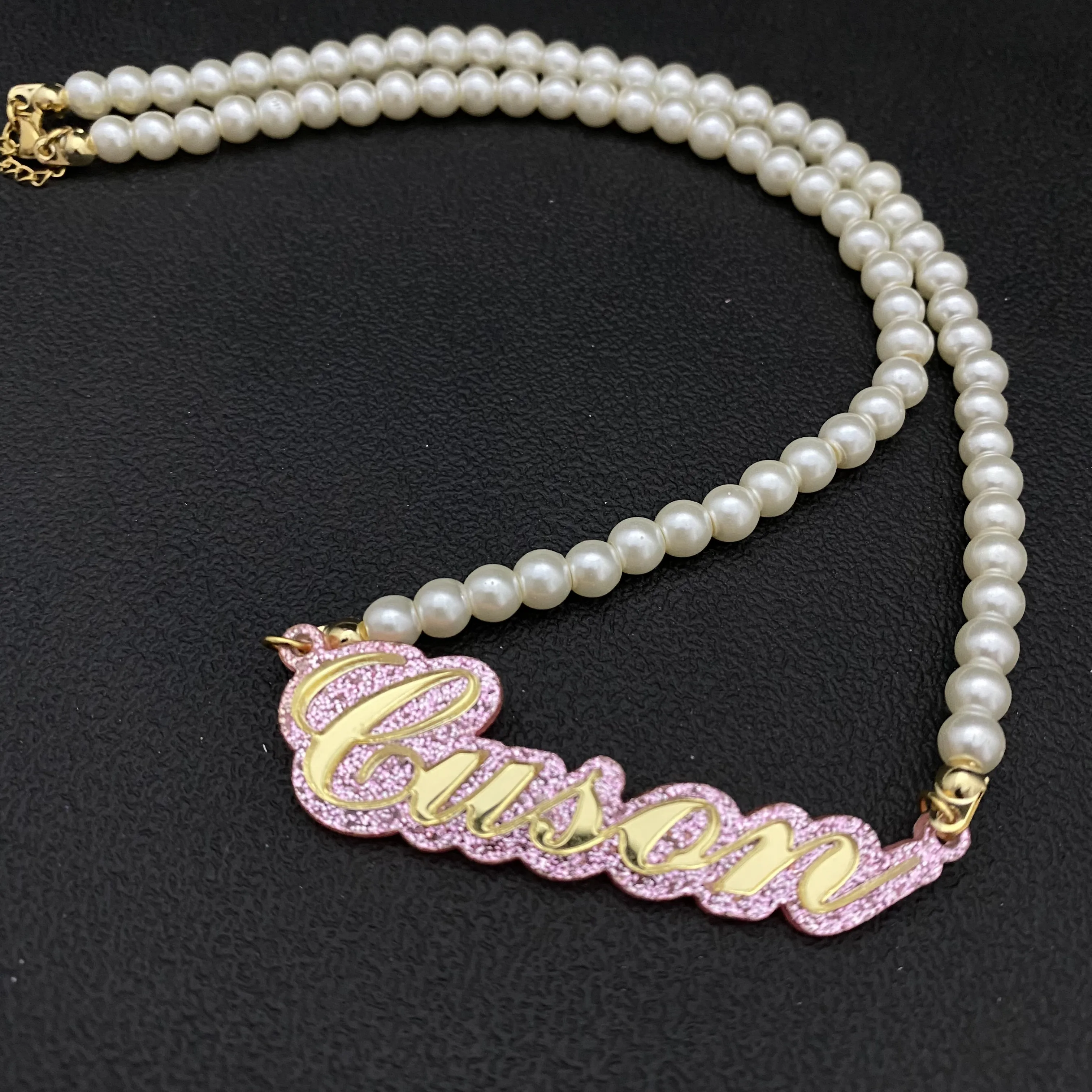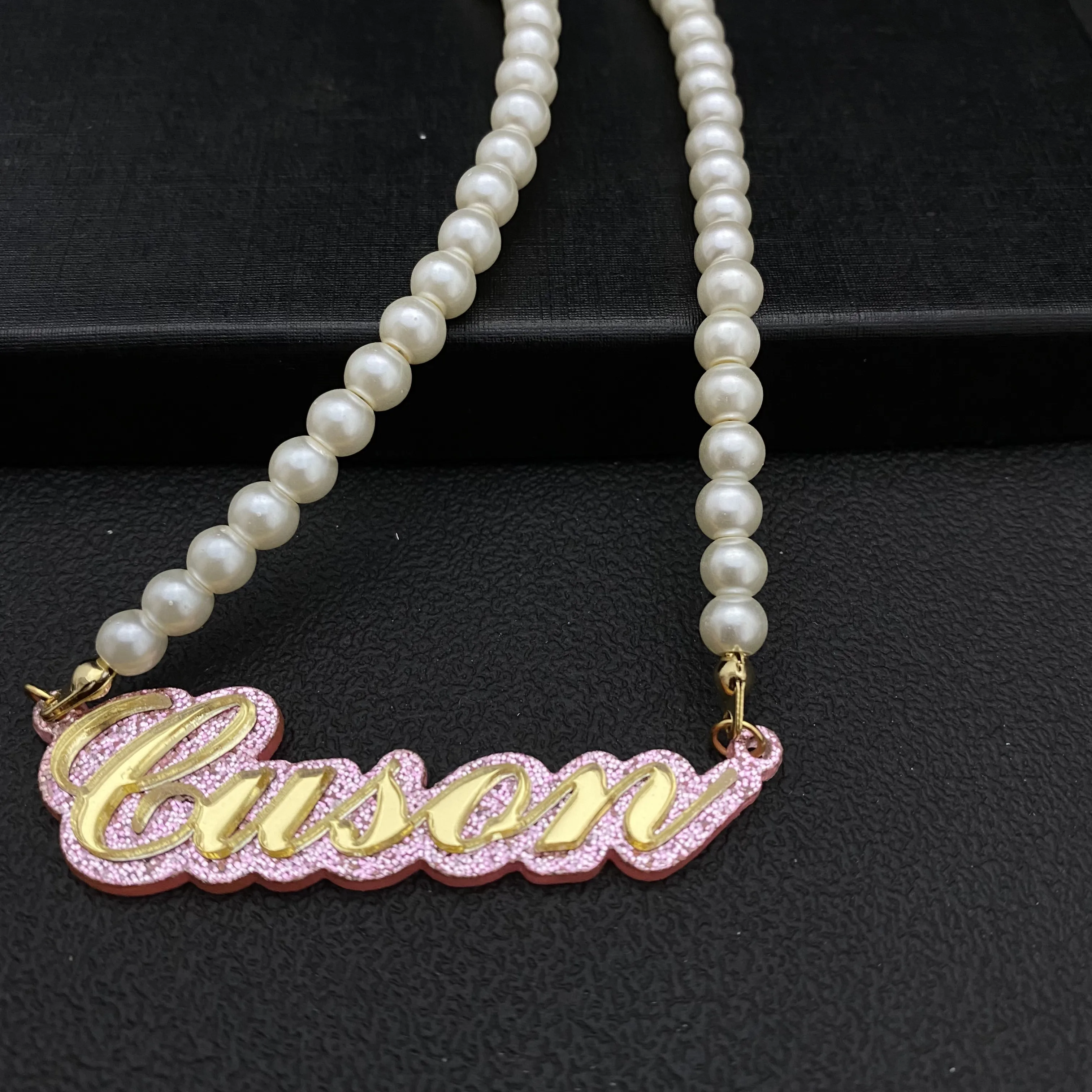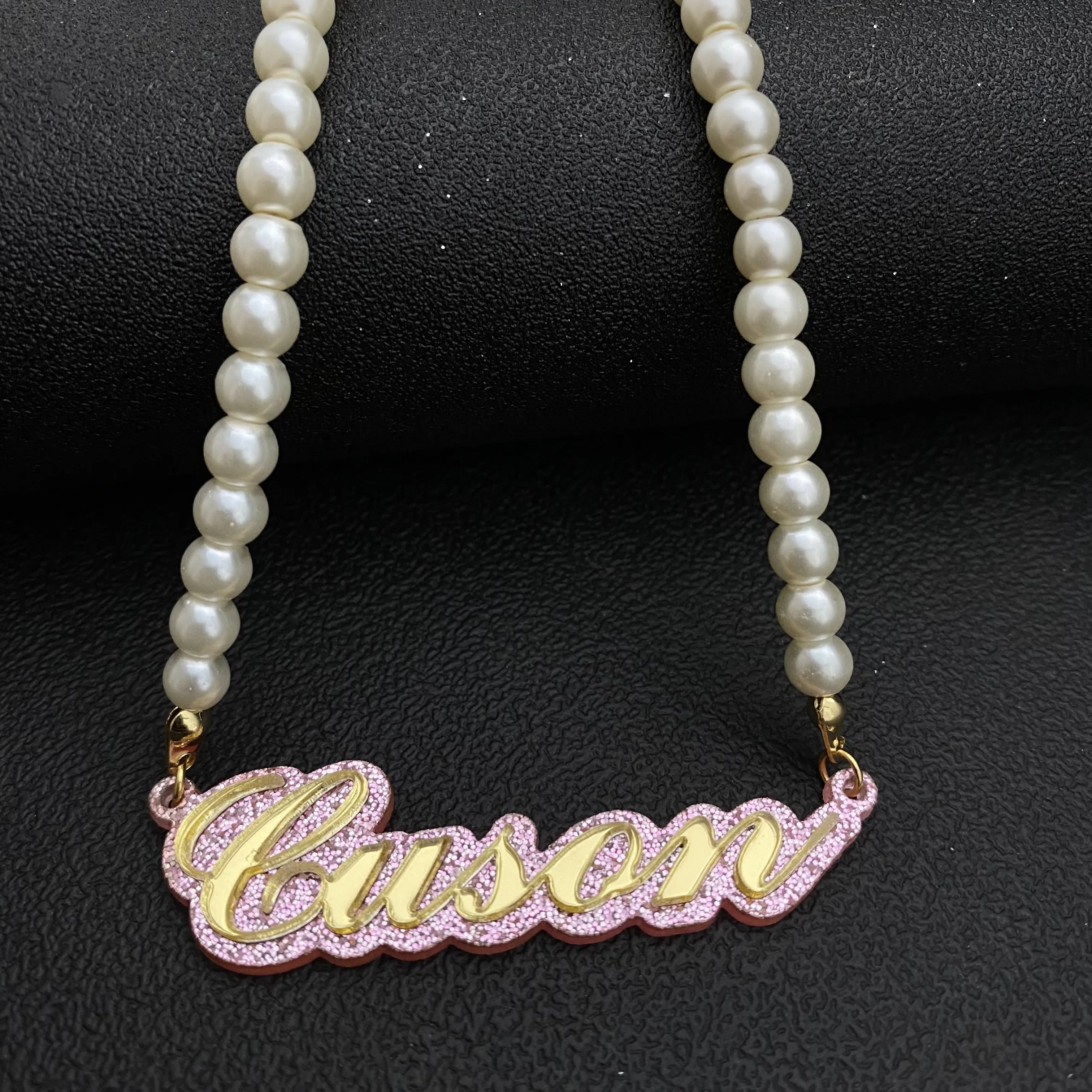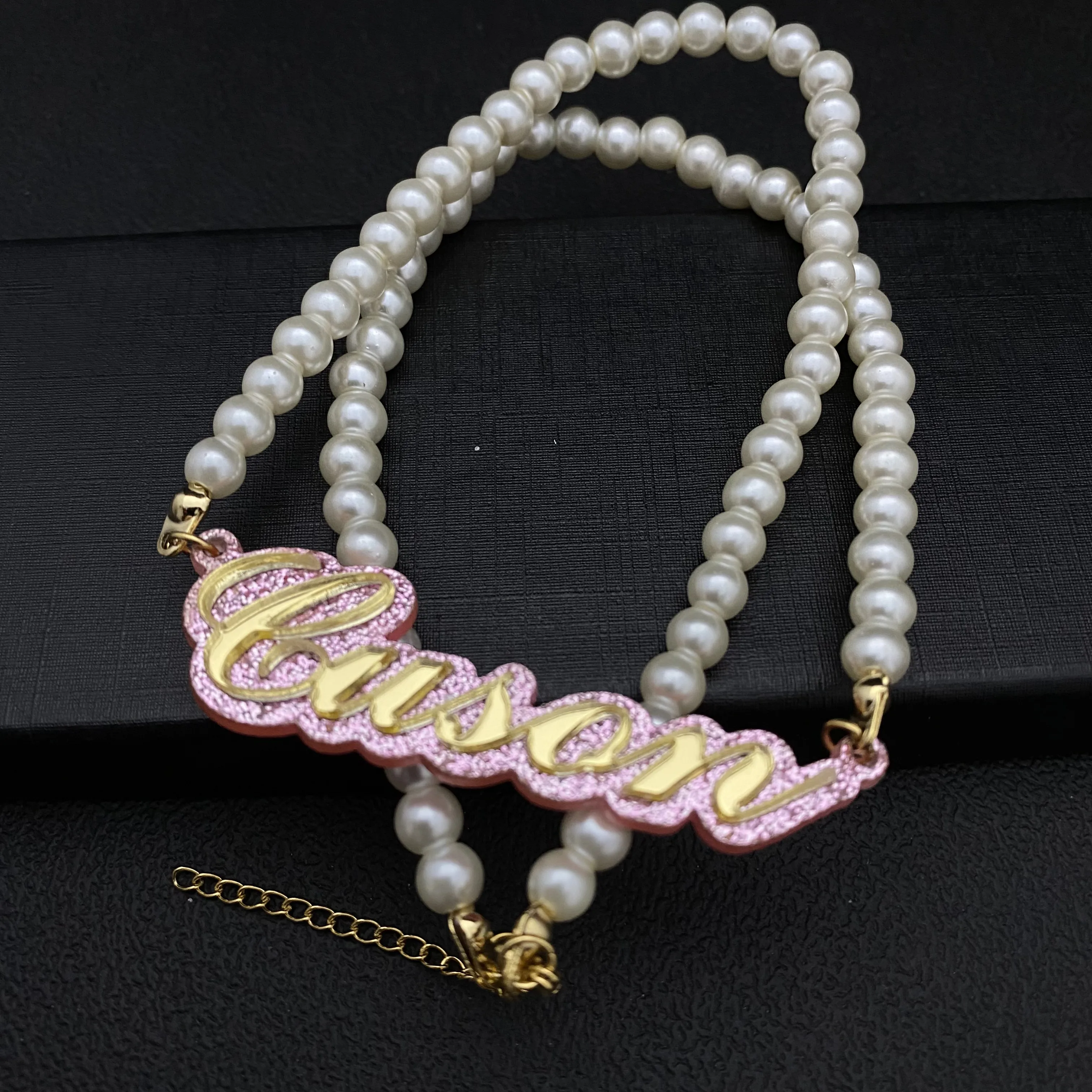 Жемчужное ожерелье с именем на заказ, акриловое ожерелье, персонализированное колье-чокер с буквами, ожерелье с подвеской для малышей, женщин, мужчин, детей