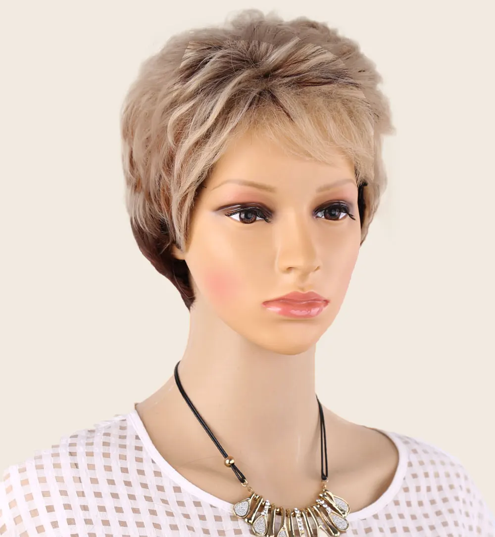 Синтетические короткие светлые парики с эффектом омбре, короткие коричневые парики с челкой, парики блонд с темными корнями для женщин, косплей, ежедневное использование