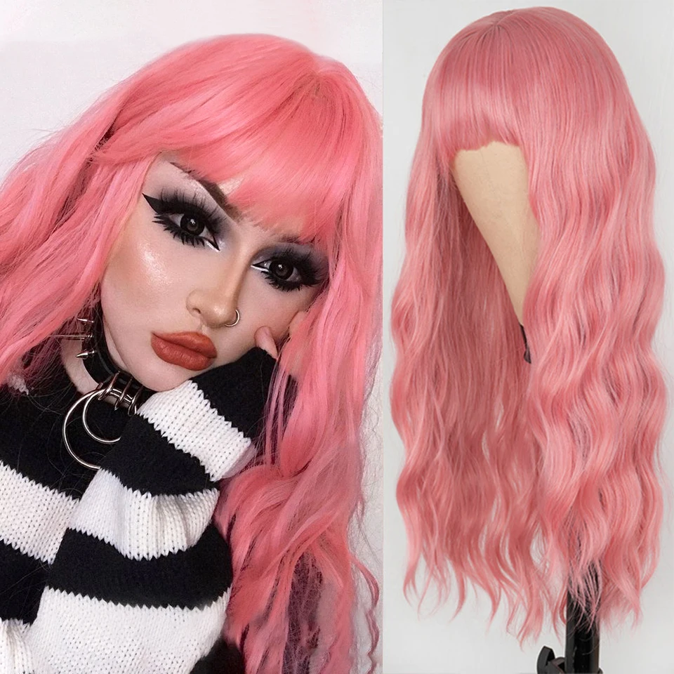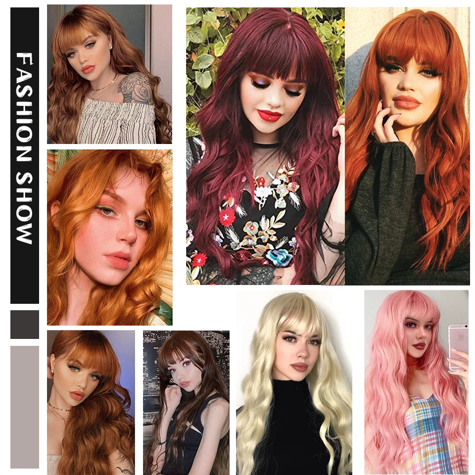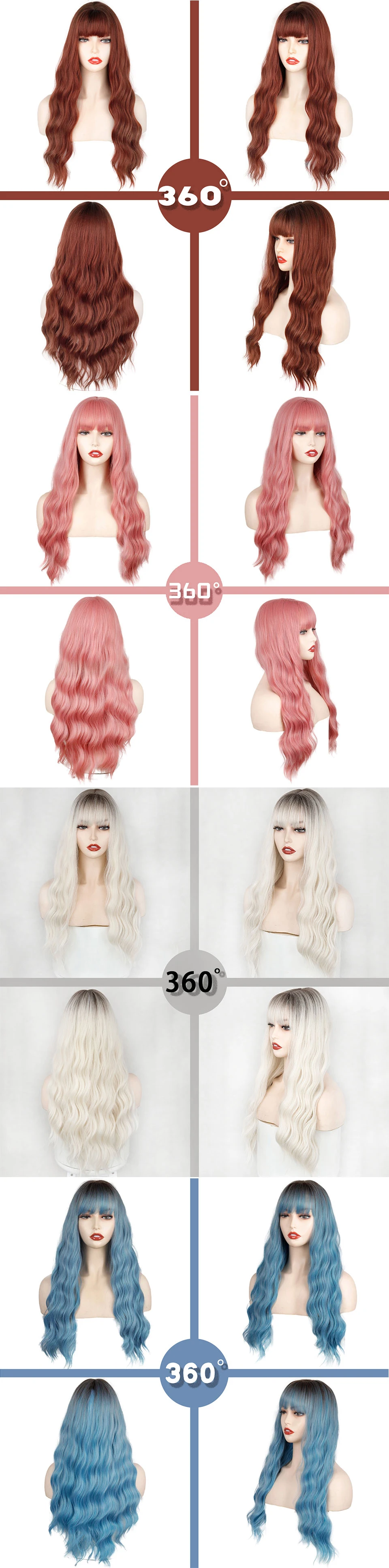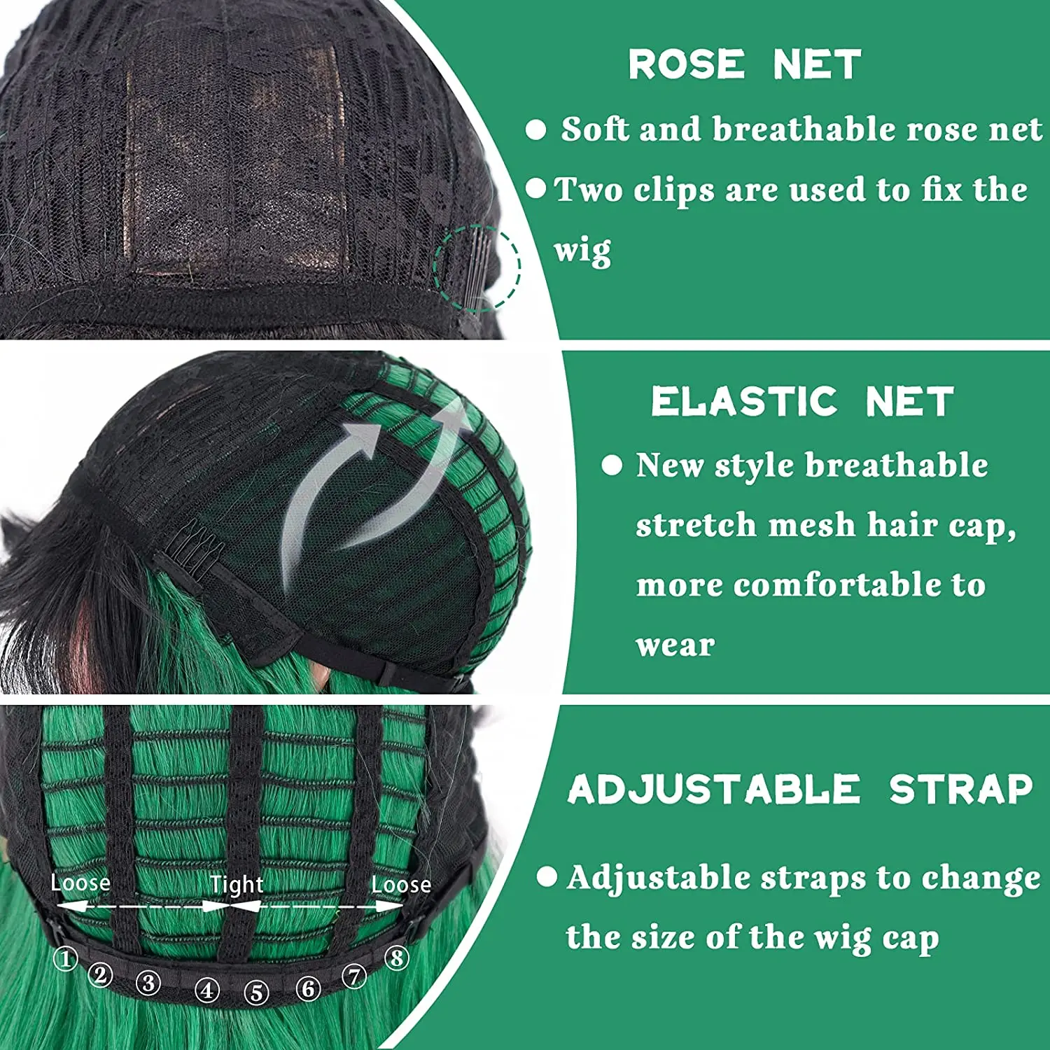 Синтетический длинный волнистый зеленый и черный парик с челкой, длинные парики для женщин, вьющийся волнистый парик, термостойкий для вечеринки, костюма