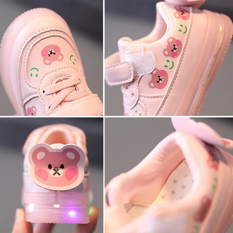 Кроссовки Детские со светодиодной подсветкой, милая обувь для начинающих ходить девочек, мягкие светящиеся туфли, подарок для маленького медведя, размеры 21-30
