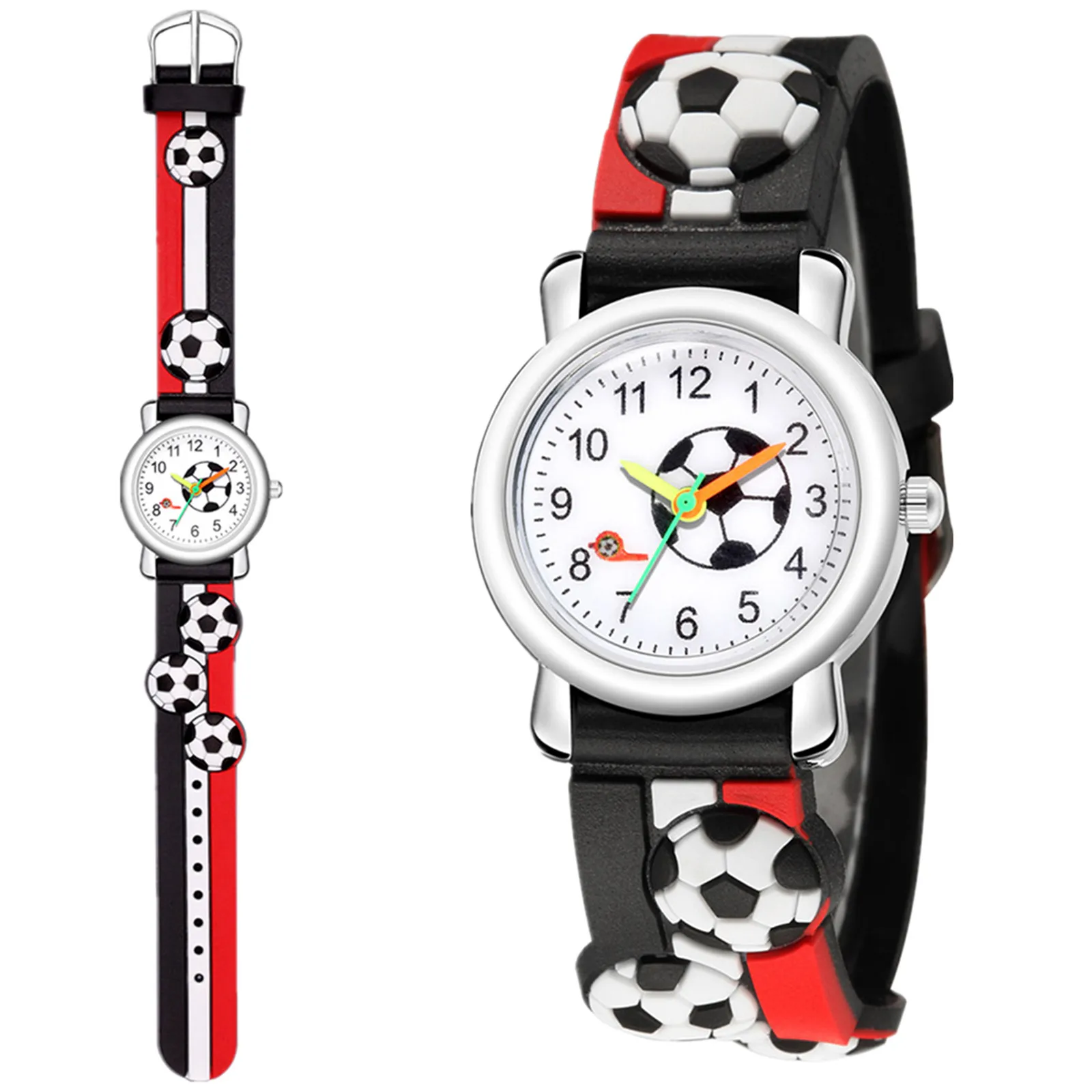 3D рельефные Модные Спортивные Детские Кварцевые часы с футбольным рисунком, подарок