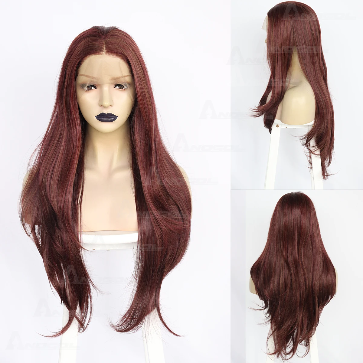 ANOGOL синтетические коричневые 13X 4 кружевные передние парики 30 дюймов Длинные гладкие красные волосы натуральные волнистые свободные части кружевной передний al парик для чернокожих женщин